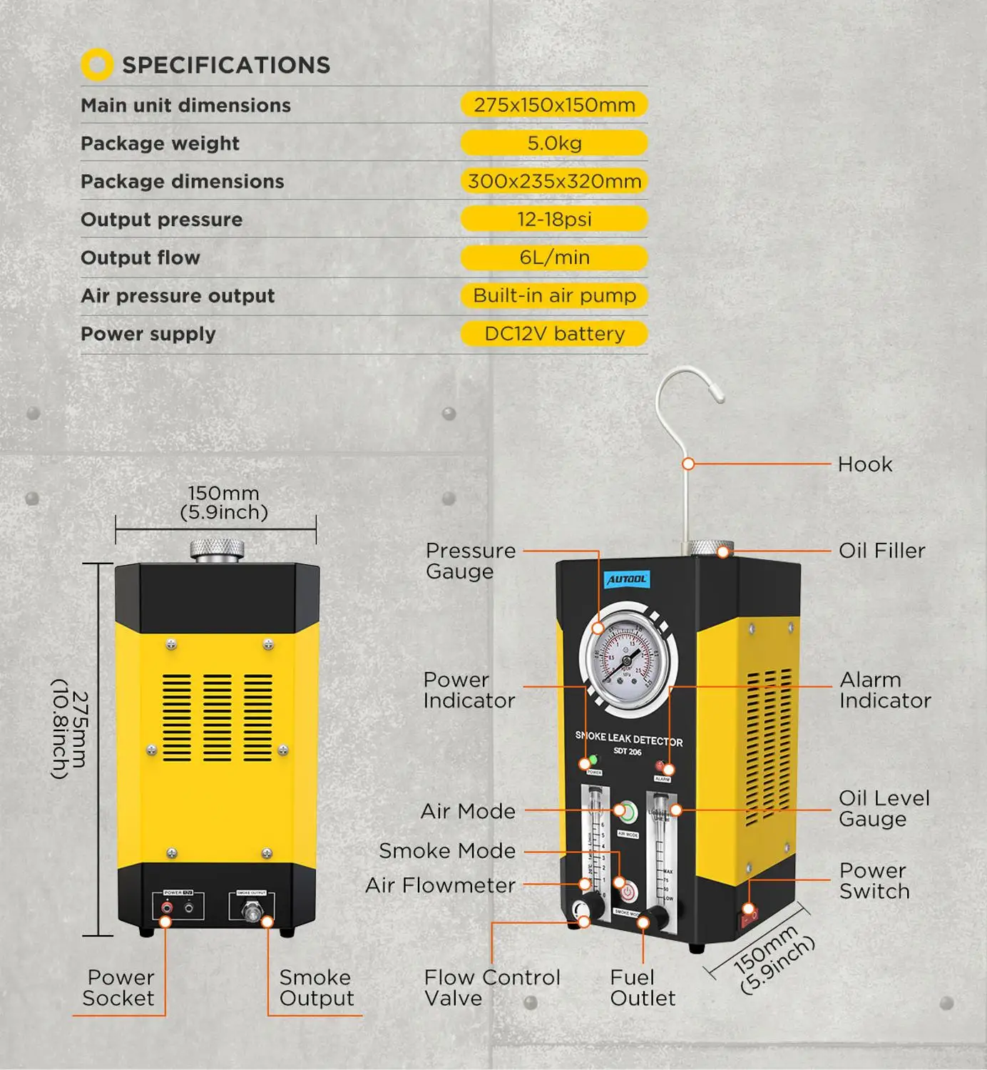 Автомобильный детектор утечки дыма AUTOOL SDT206, 12 В