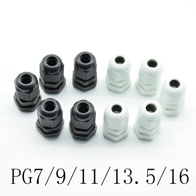 10 шт., IP68PG7 PG9 PG11 PG13.5 PG16 для 3-6,5 мм-14 мм, кабель CE, белый, черный, водонепроницаемый нейлоновый пластиковый кабельный ввод, разъем