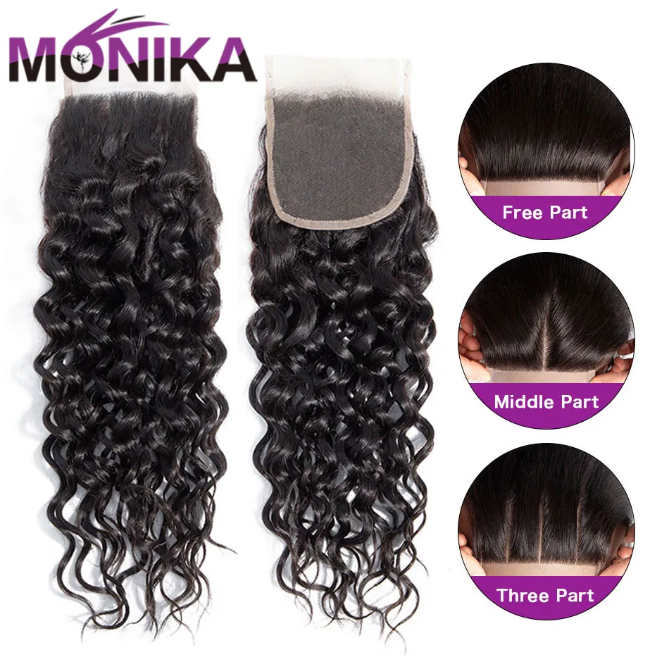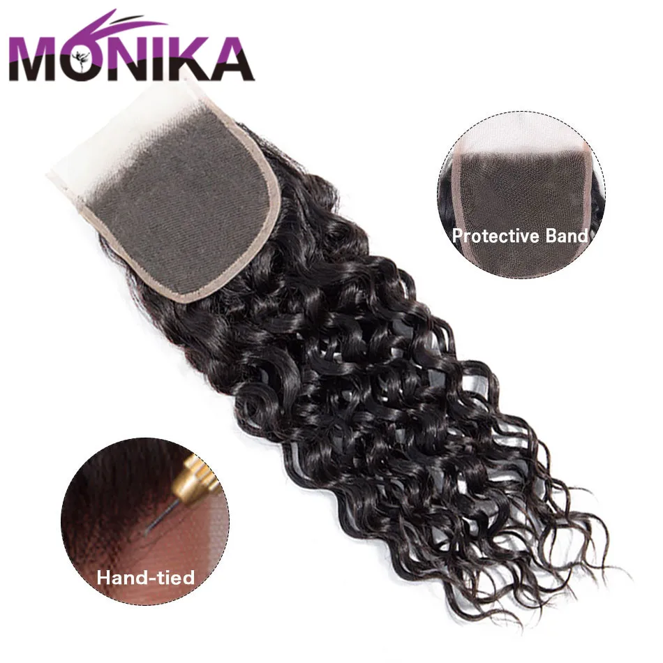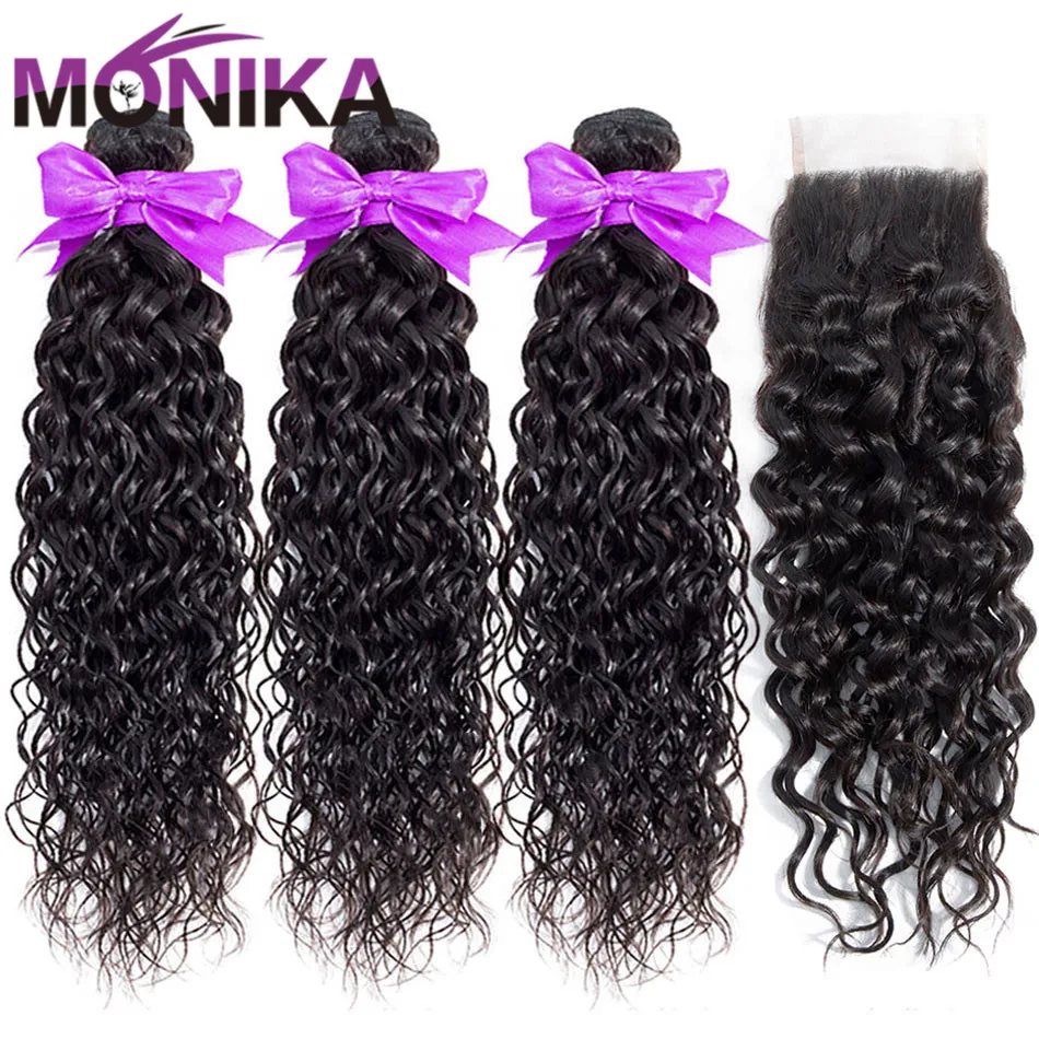 Monika волосы перуанские волосы с закрытием волна воды пучки с закр...
