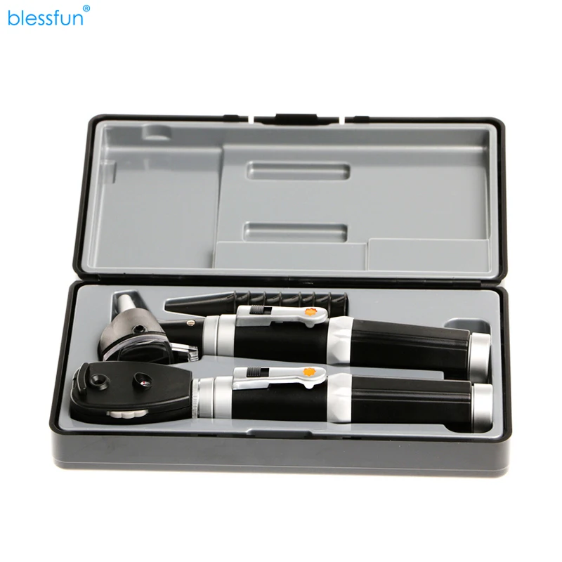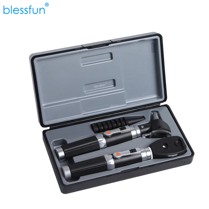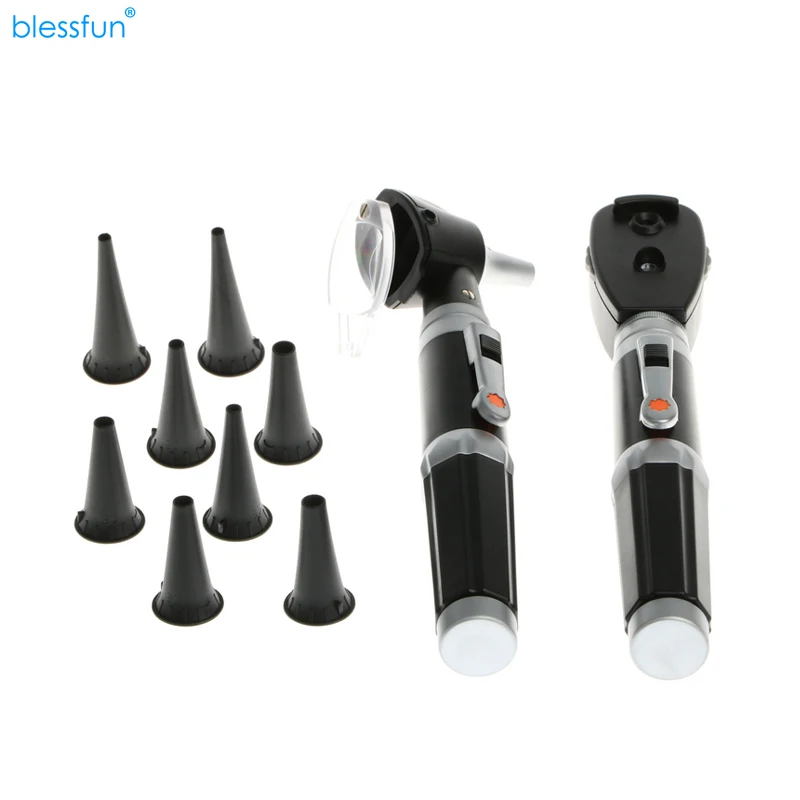 Уха глаз медицинские товары оптоволоконного кабеля Отоскоп Офтальмоскоп 2 шт./компл., профессиональный прямая Opthalmoscope медицинские Диагностические испытания ENT комплект