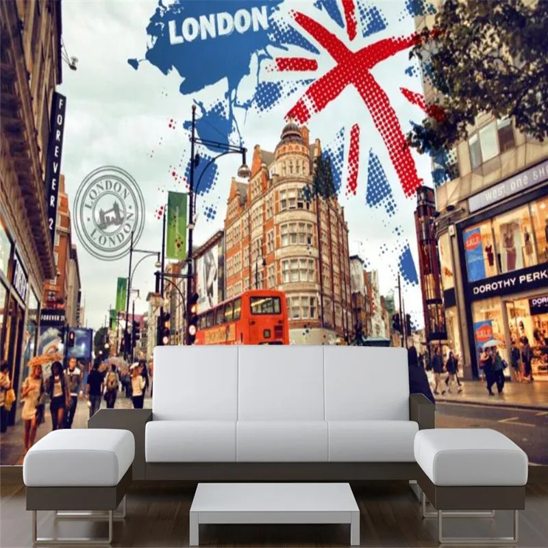 Пользовательские Настенные обои 3D Великобритания Лондон улица пейзаж фото обои Бар Кафе Ресторан гостиная обои домашний декор
