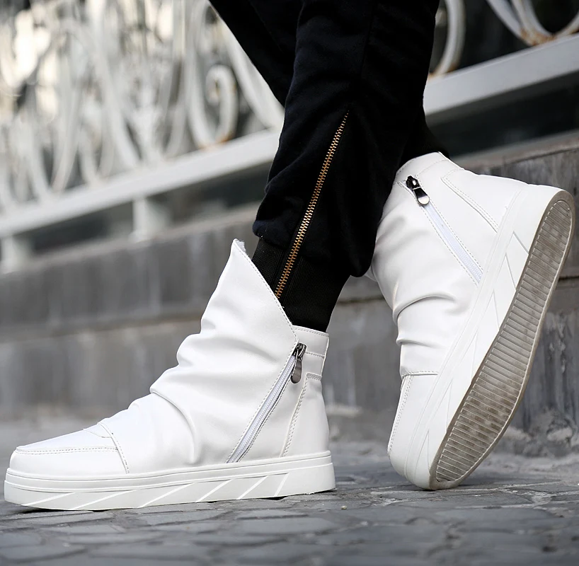 Новые мужские ботинки на платформе 6 см, увеличивающие рост кожаные ботинки с молнией сзади мужские высокие черные и белые ботинки смешанных цветов Y3