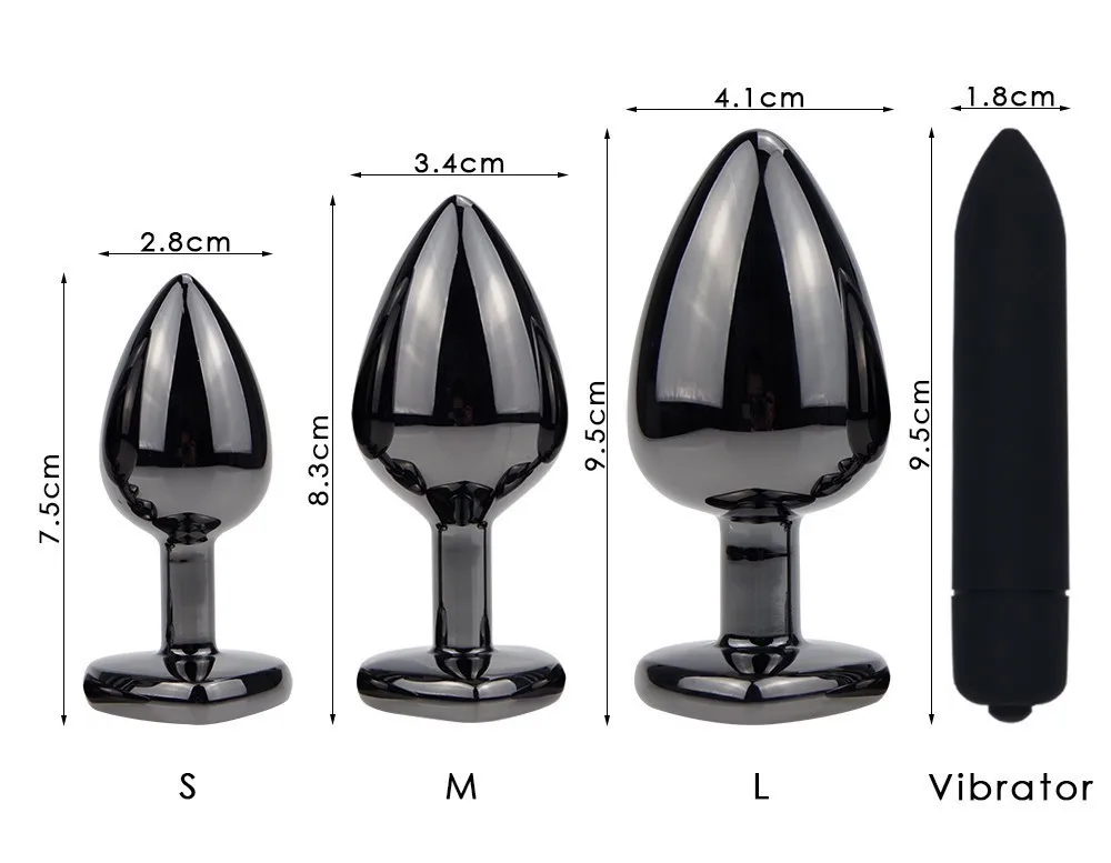 Пистолет черный пластинчатый Металл Анальная пробка розовое сердце база ювелирных изделий фаллоимитатор вибратор простаты Массажер Пуля Вибратор Анальная пробка для мужчин гей