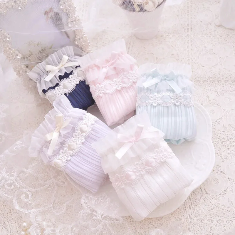 Кружевные трусики принцессы из молочного шелка с вышивкой, милое женское нижнее белье, атласное шелковое гладкое бесшовное нижнее белье с оборками