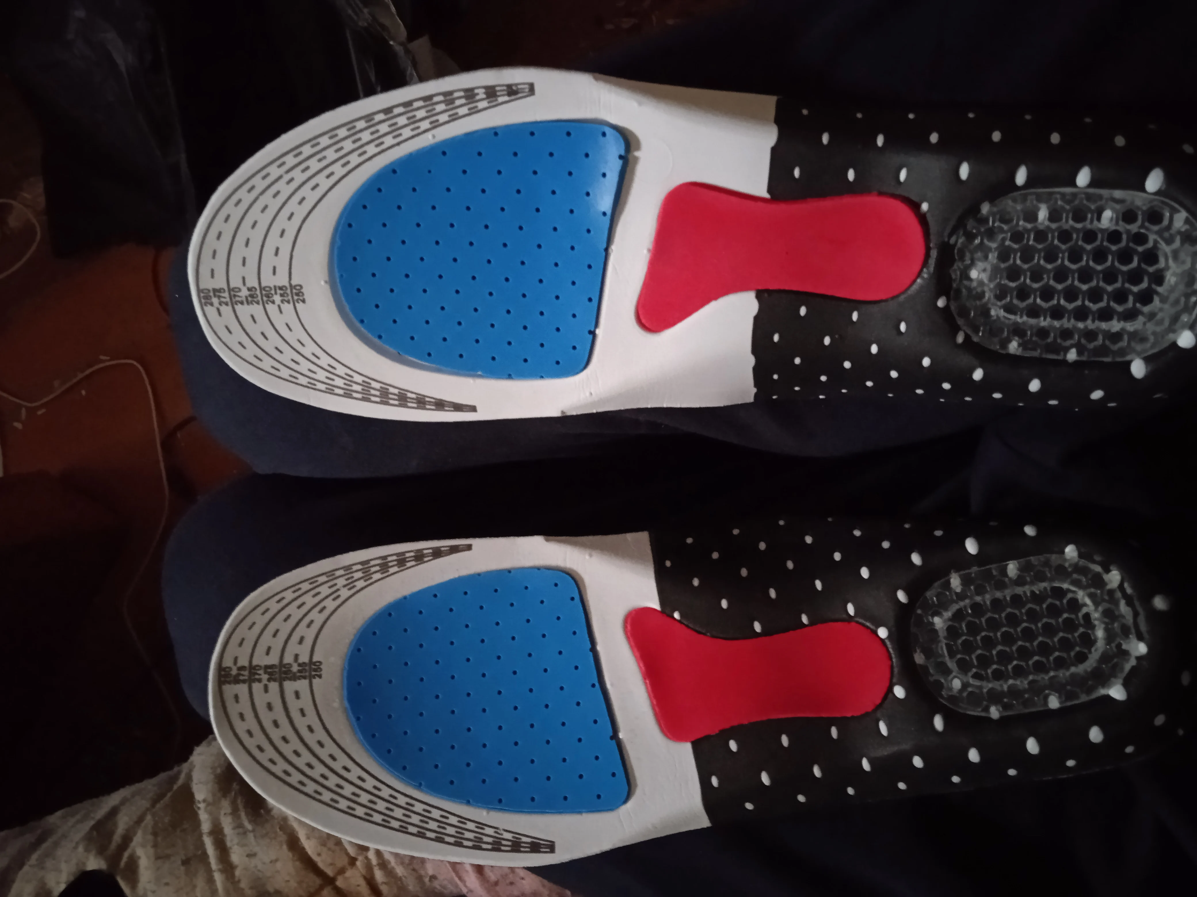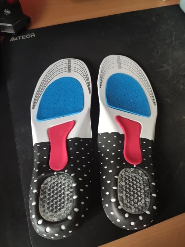 Приятные на ощупь мягкие стельки. Силиконовая вставка в пятке хорошо амортизирует. Есть разметка для обрезки стельки под нужный размер. Рекомендую.