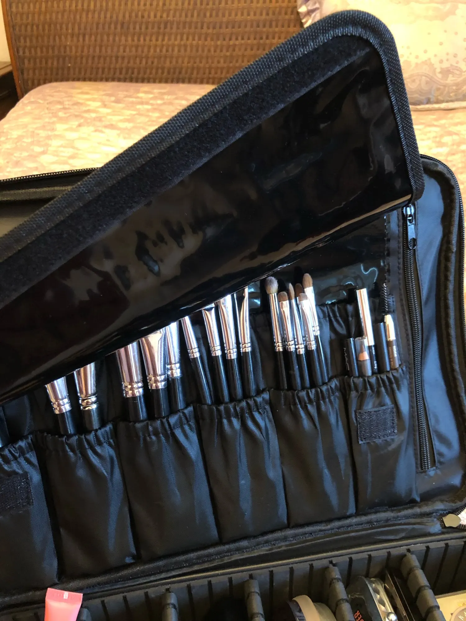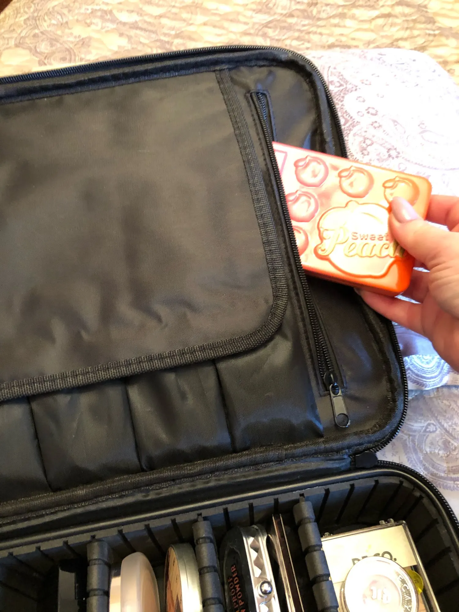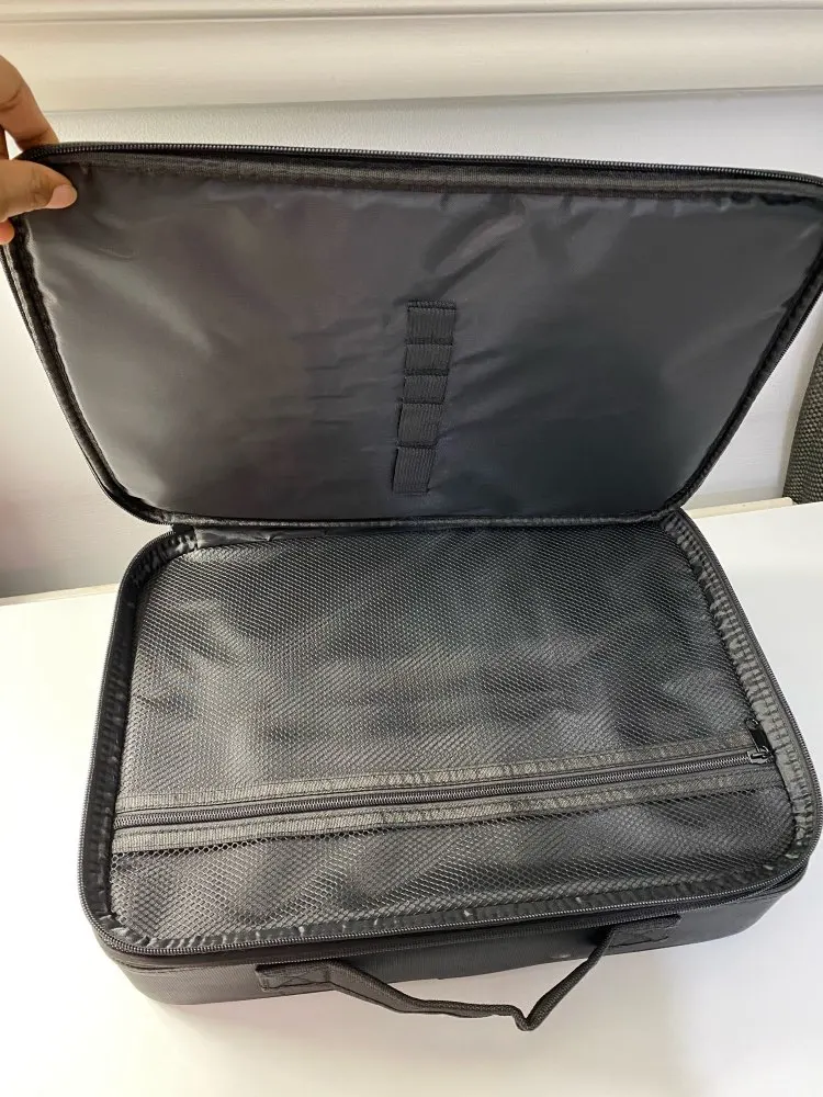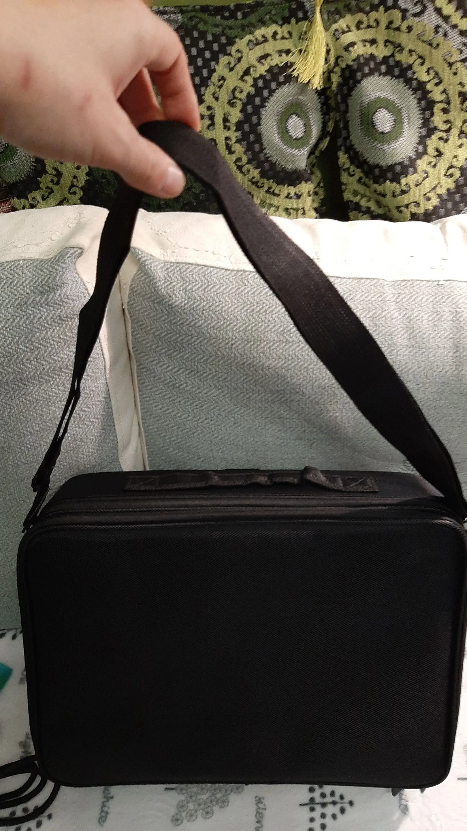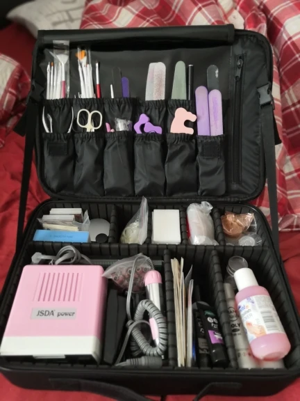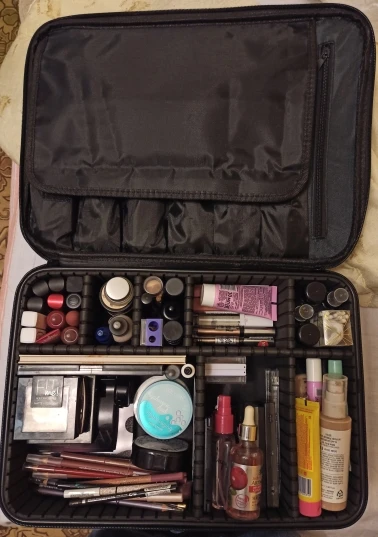 Очень хорошее качество! Заказал самый большой, и он прибыл в течение 2 недель. Вы можете настроить отсеки в чехле по своему вкусу. Заказ был аккуратно упакован и хорошо защищен. Есть ремешок, который вы можете прикрепить к любой Стороне, так что вы также можете носить его на плече. Мне нравится этот товар, и я не жалею о его заказе. Теперь я наконец-то могу хранить весь свой макияж в одном месте. Я вежливо повторил это!