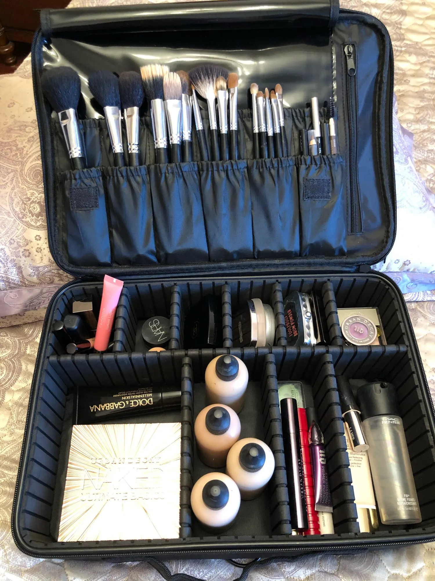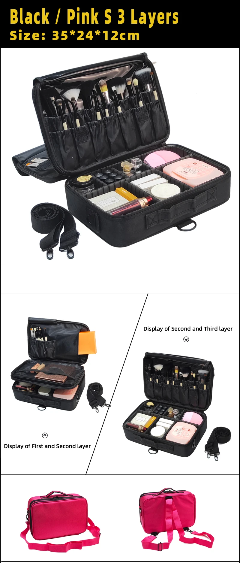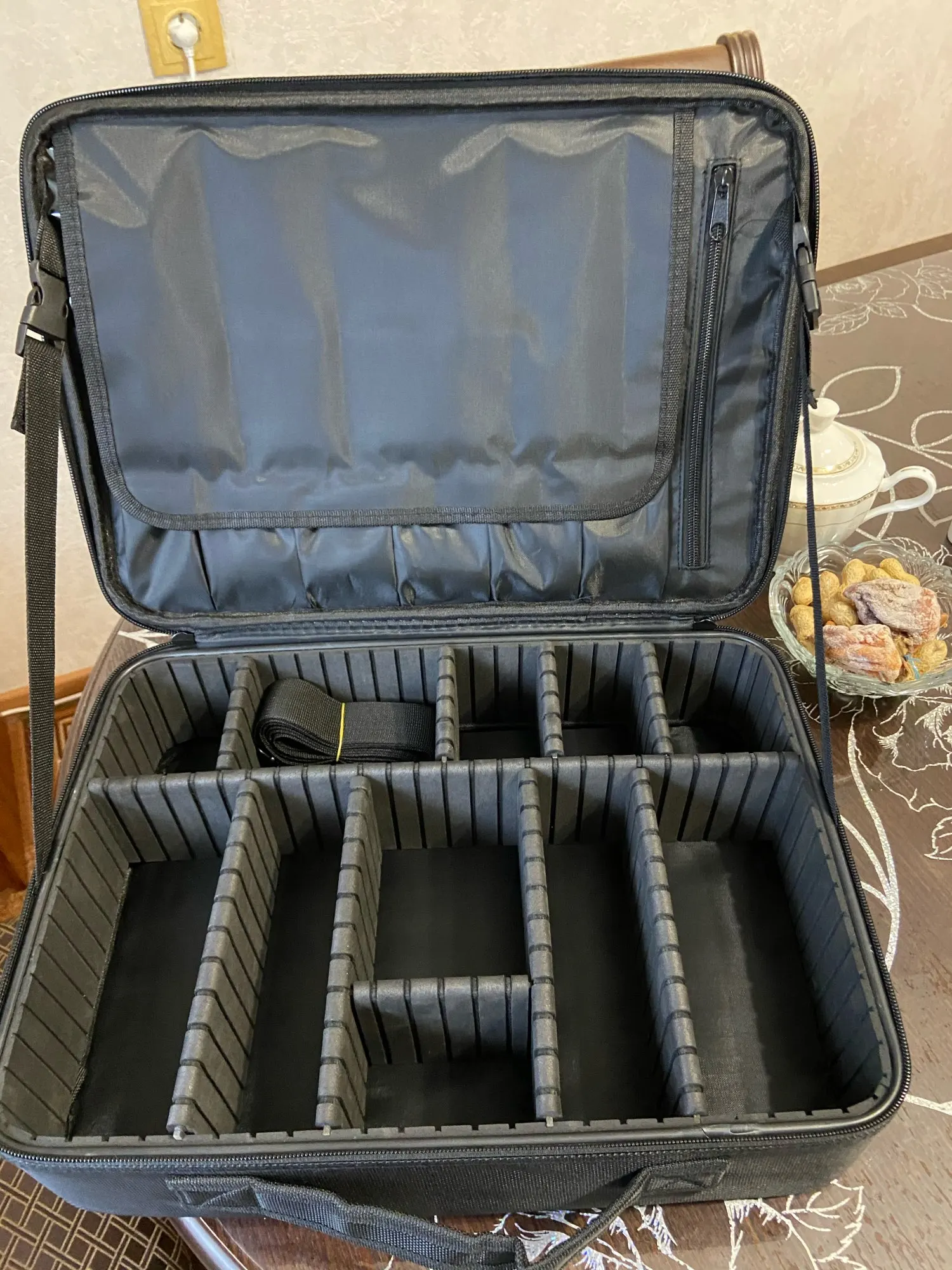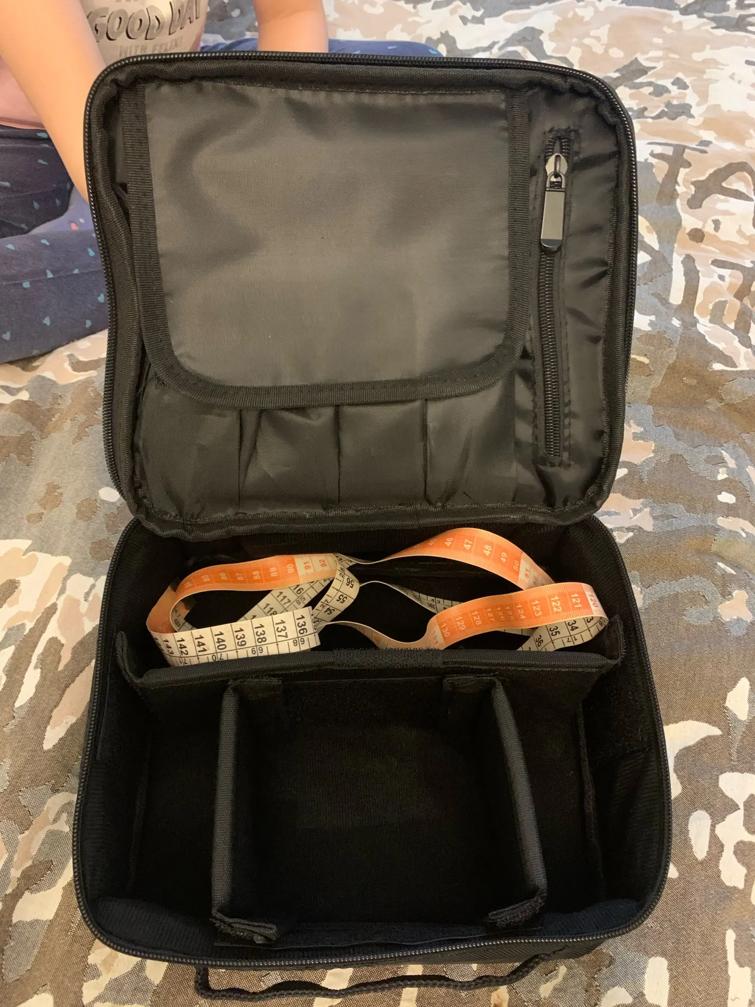 Очень хорошее качество! Заказал самый большой, и он прибыл в течение 2 недель. Вы можете настроить отсеки в чехле по своему вкусу. Заказ был аккуратно упакован и хорошо защищен. Есть ремешок, который вы можете прикрепить к любой Стороне, так что вы также можете носить его на плече. Мне нравится этот товар, и я не жалею о его заказе. Теперь я наконец-то могу хранить весь свой макияж в одном месте. Я вежливо повторил это!