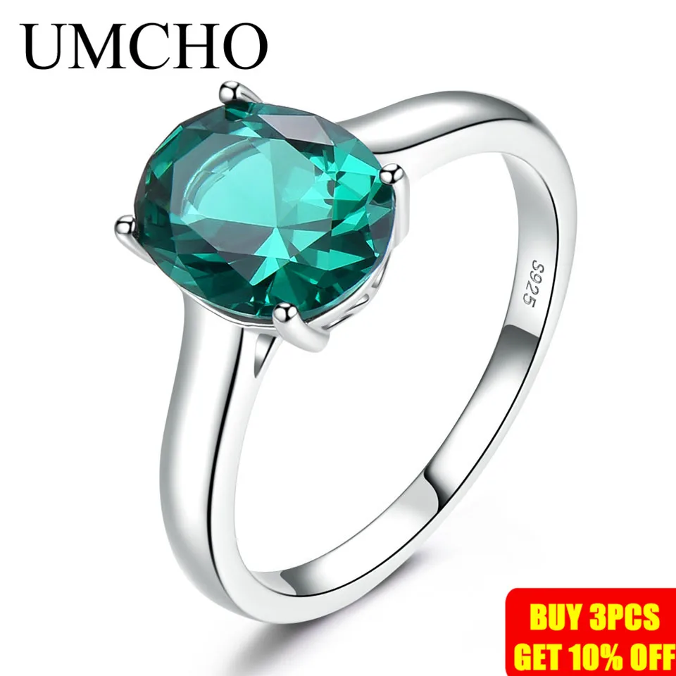 UMCHO зелёный Изумрудный камень, кольца для женщин, Стерлинговое Се...