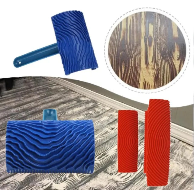 Синий резиновый валик для рисования под дерево, кисть, сделай сам, инструмент для рисования, рисунок, настенный художественный валик для рисования, украшение дома, художественный инструмент