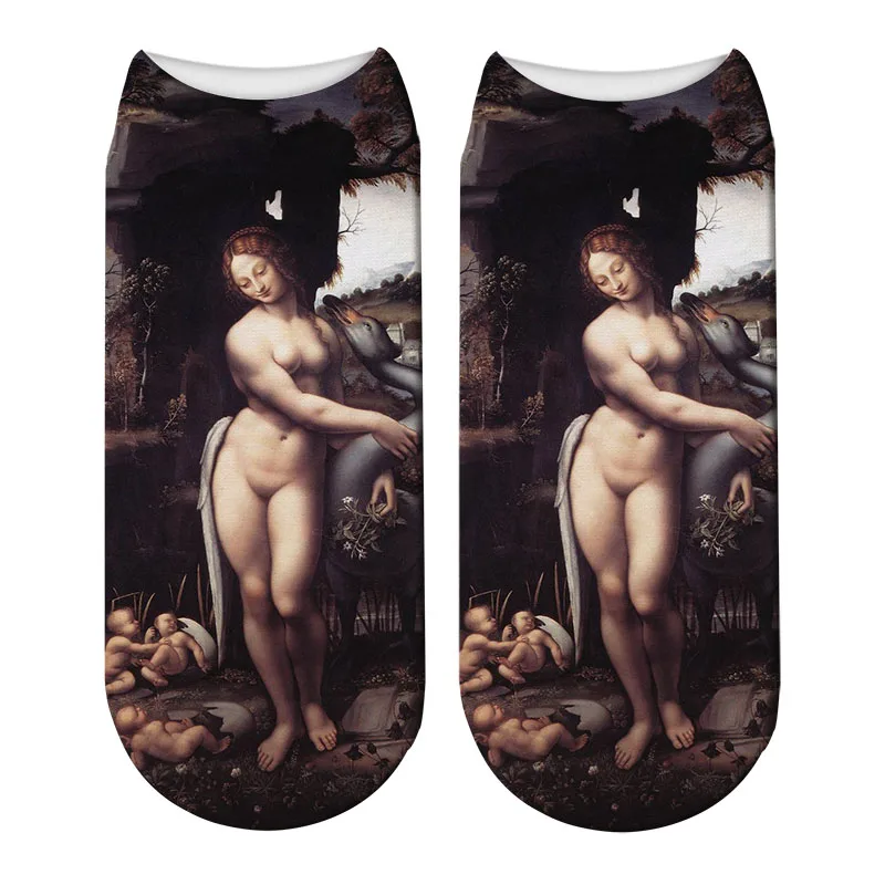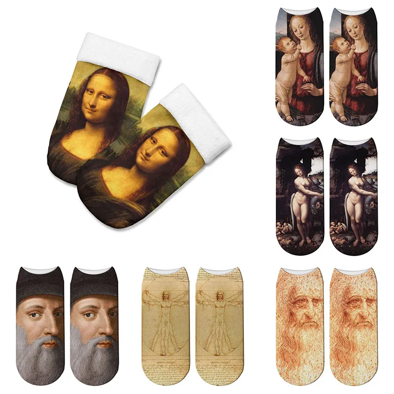 Носки женские масляные в стиле Харадзюку С 3D-принтом Моны Лизы