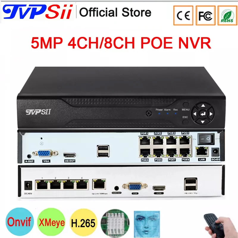 Hi3536D Xmeye аудио 5MP 8CH 8-канальный H.265 + распознавание лица 48V POE Onvif CCTV DVR NVR сетевой видеорегистратор Система