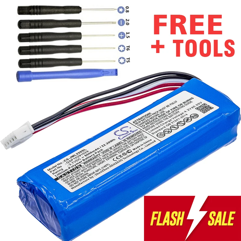 Аккумулятор GSP1029102A, для JBL Charge 3, 6000 мАч, 3,7 в (Проверьте расположение 2-х красных проводов на вашей старой батарее)