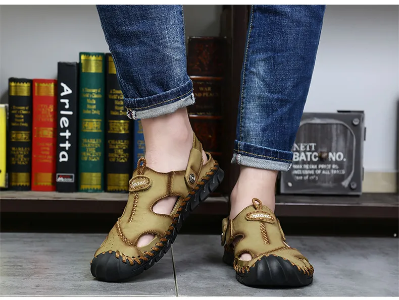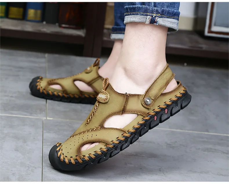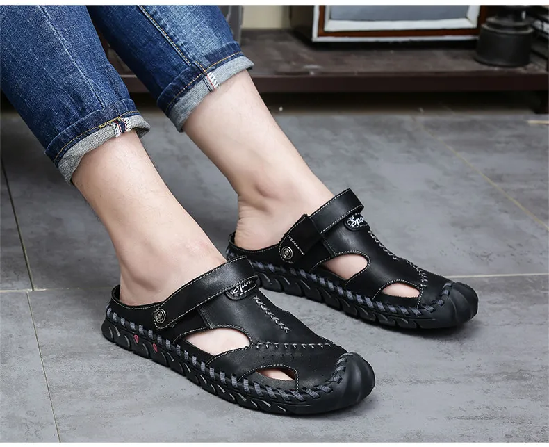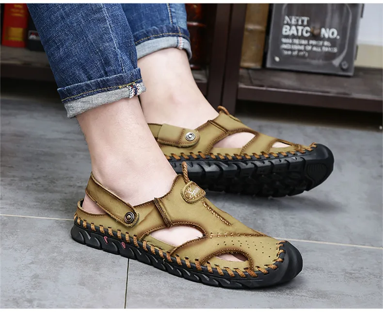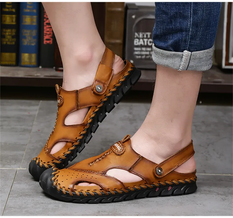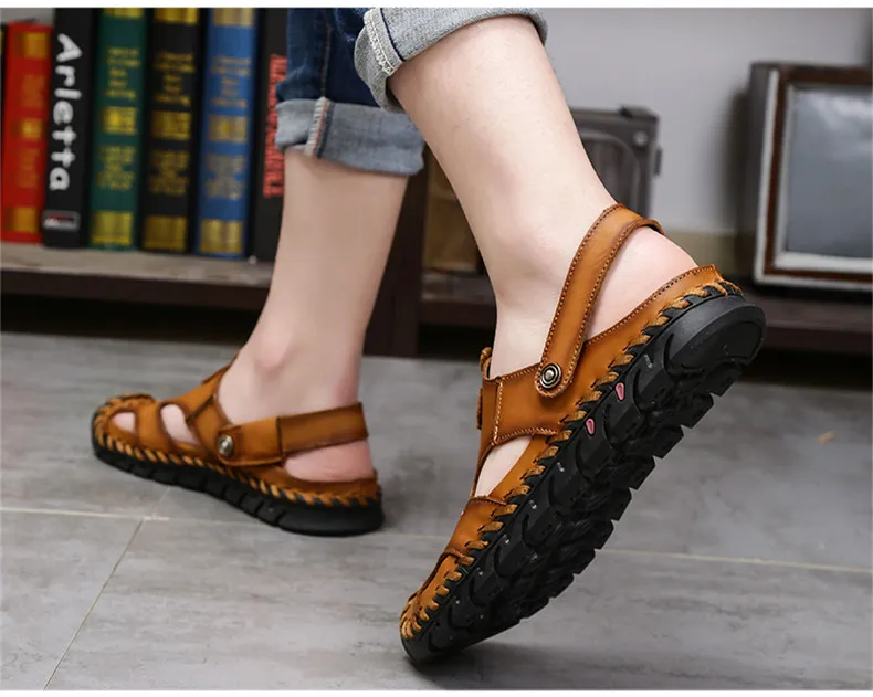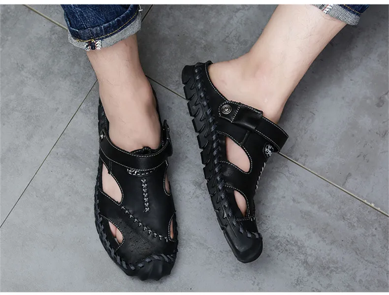 Новые повседневные мужские мягкие сандалии, удобные мужские летние кожаные слиперы, мужские летние уличные пляжные сандалии в римском стиле, большие размеры 38-48