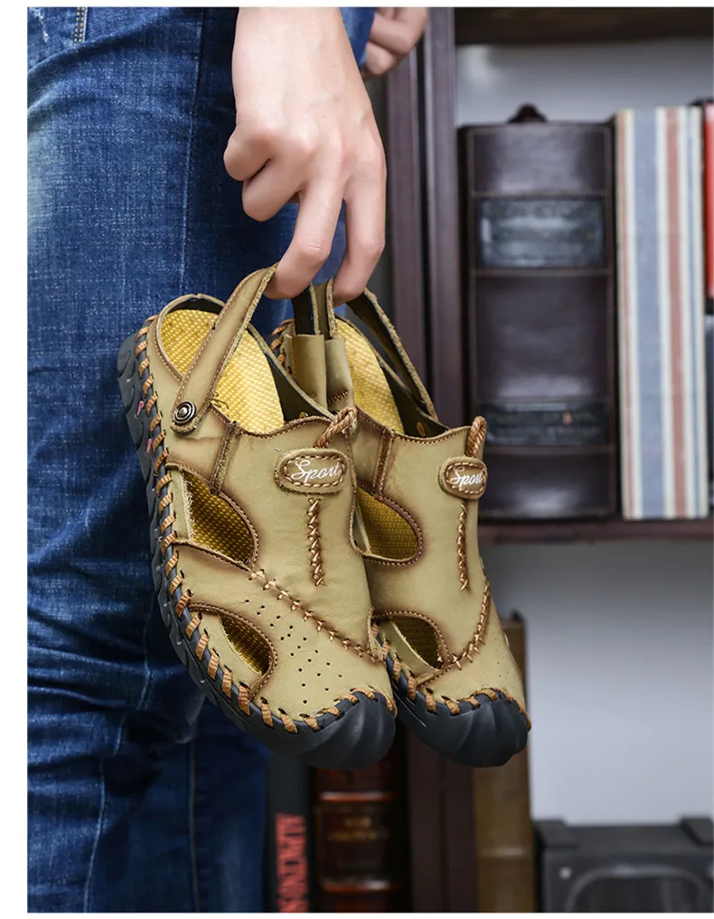 Новинка; Мужские сандалии из мягкой натуральной кожи; Классическая ...