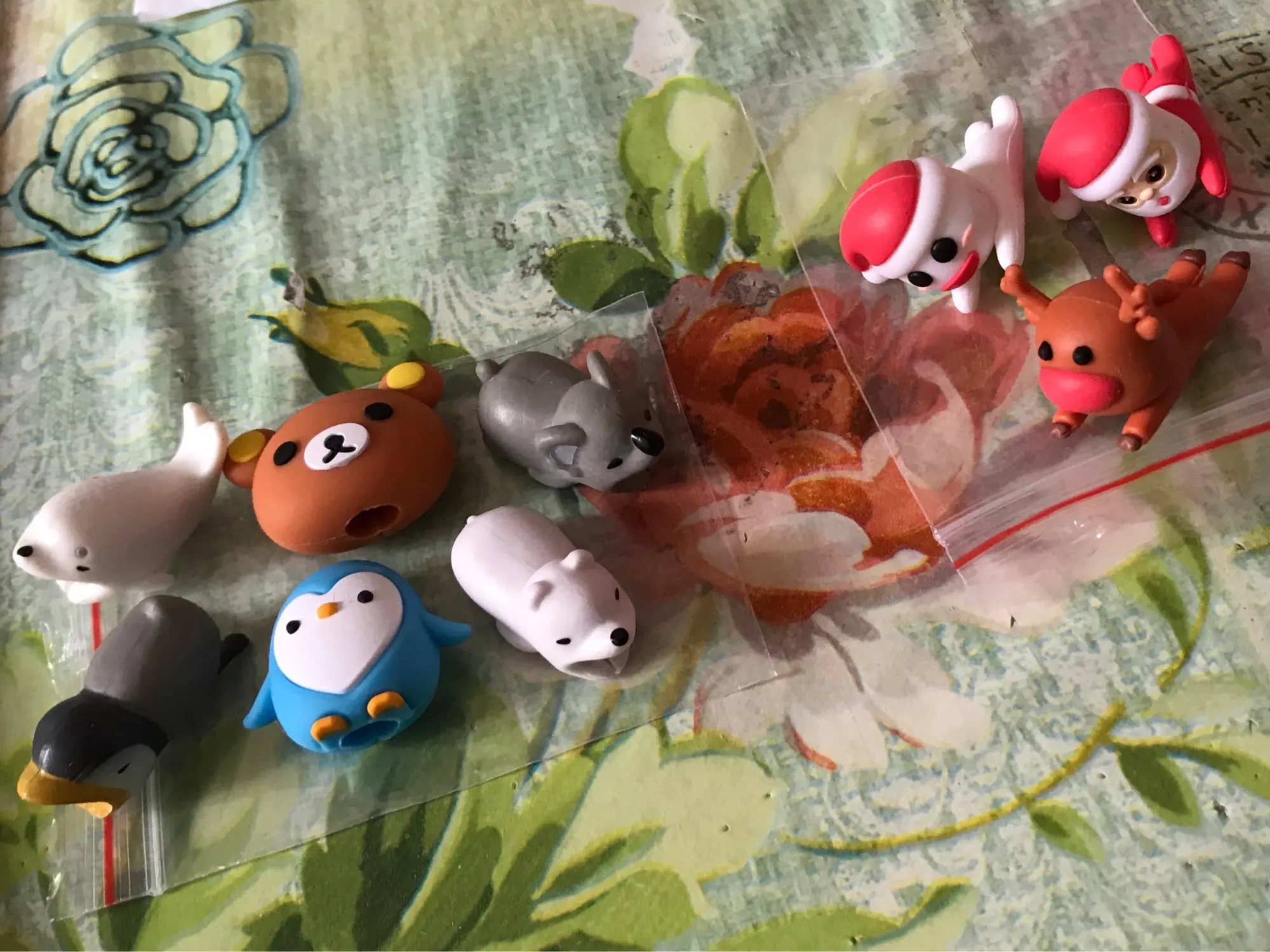 Мило, сделано хорошо, Упаковка и доставка не повреждены. Мне они очень нравятся, но этот снеговик с корпусом и тот, что у Санта Клауса, немного трудно поместить в кабель, я приложил некоторые усилия, и этот фигурный олень не сумел поставить его, я буду использовать больше силы, чтобы сделать эта нить, я думаю. Для других можно легко положить их, и они такие милые, как вы можете видеть на фотографиях, подойдут оба кабеля micro usb для iPhone.