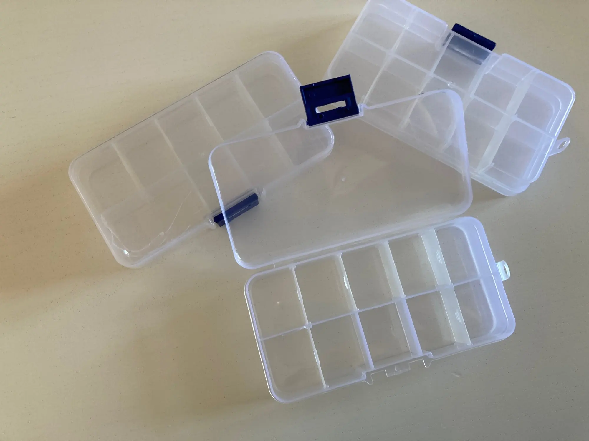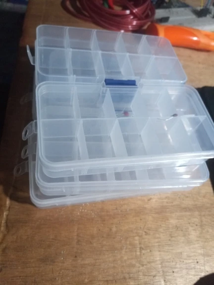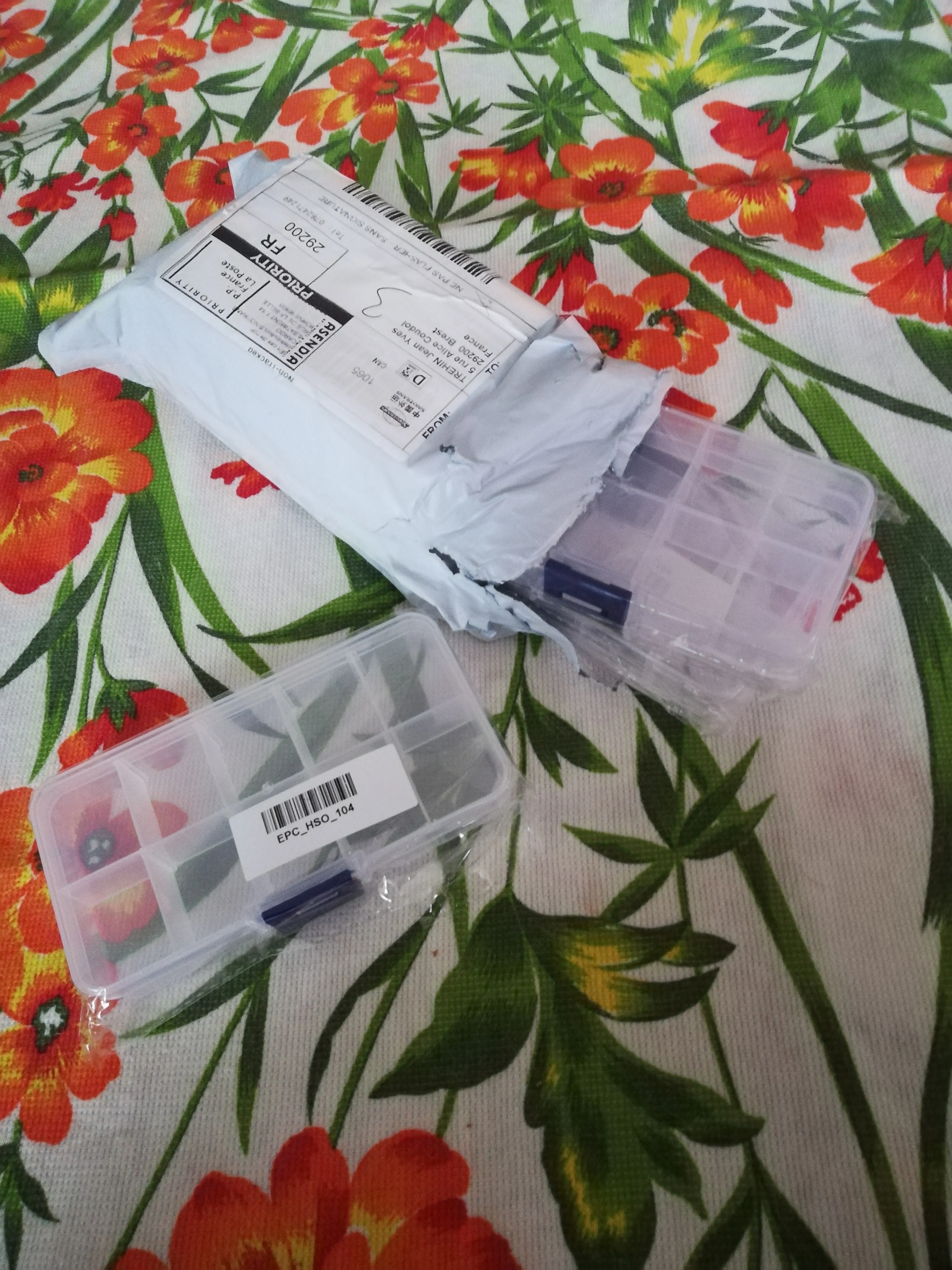 Petites boites très pratiques pour ranger des composants électroniques. Une des boites est arrivée avec un petit peu cassée sur le système de fermeture mais j'ai réussi à le réparer.