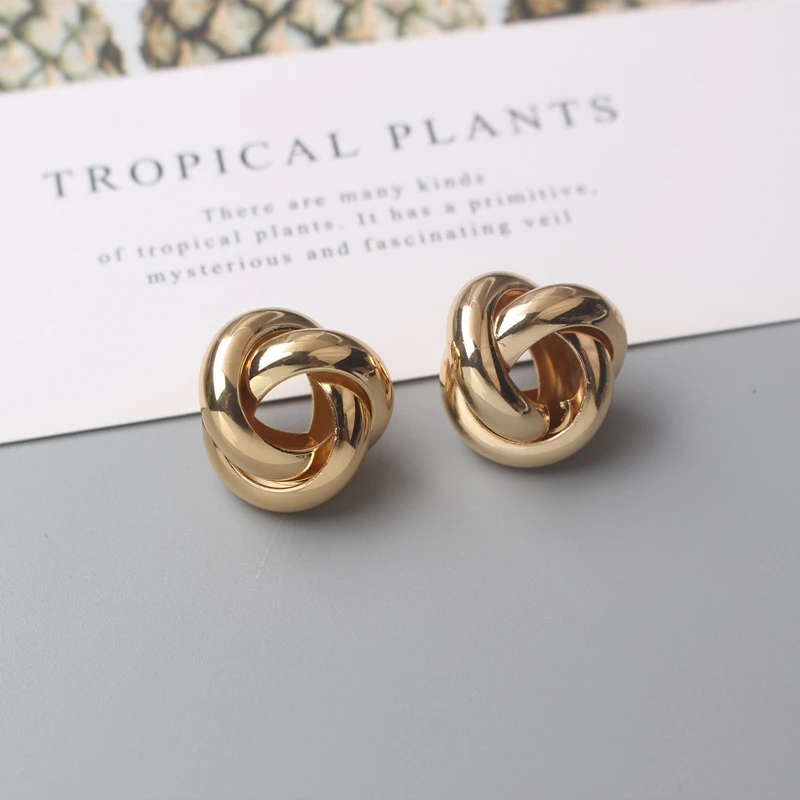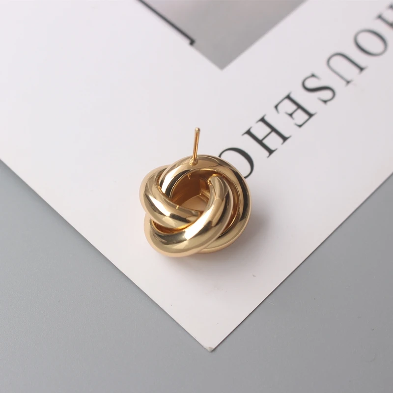 Новые модные маленькие серьги-гвоздики золотистого цвета скрученный для женщин эффектные глянцевые металлические серьги минималистичные вечерние ювелирные изделия