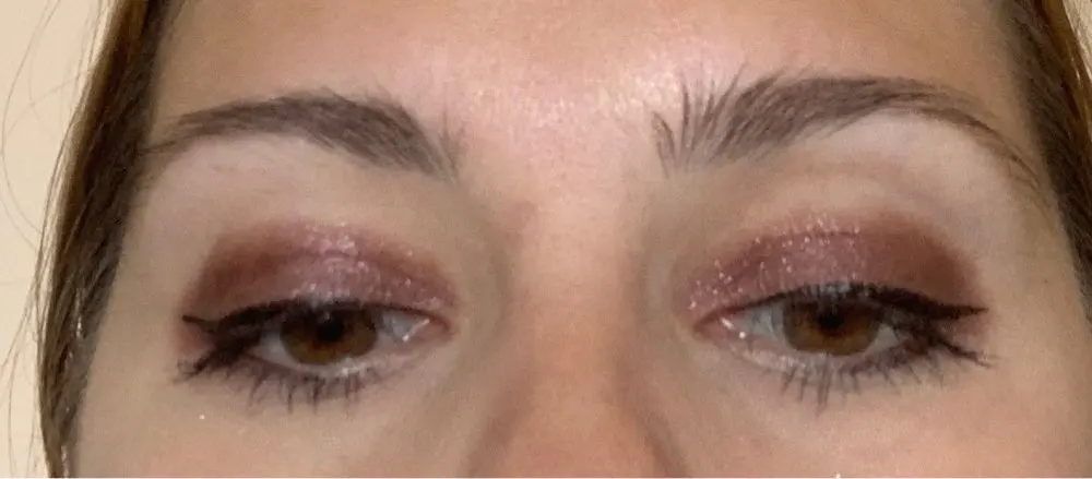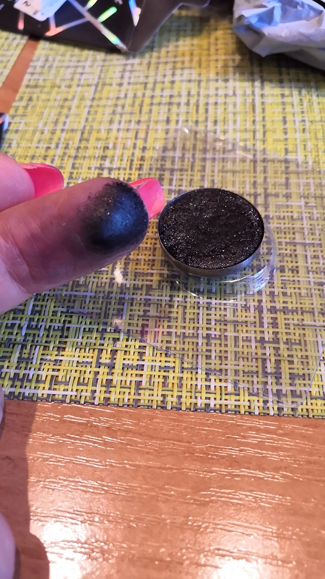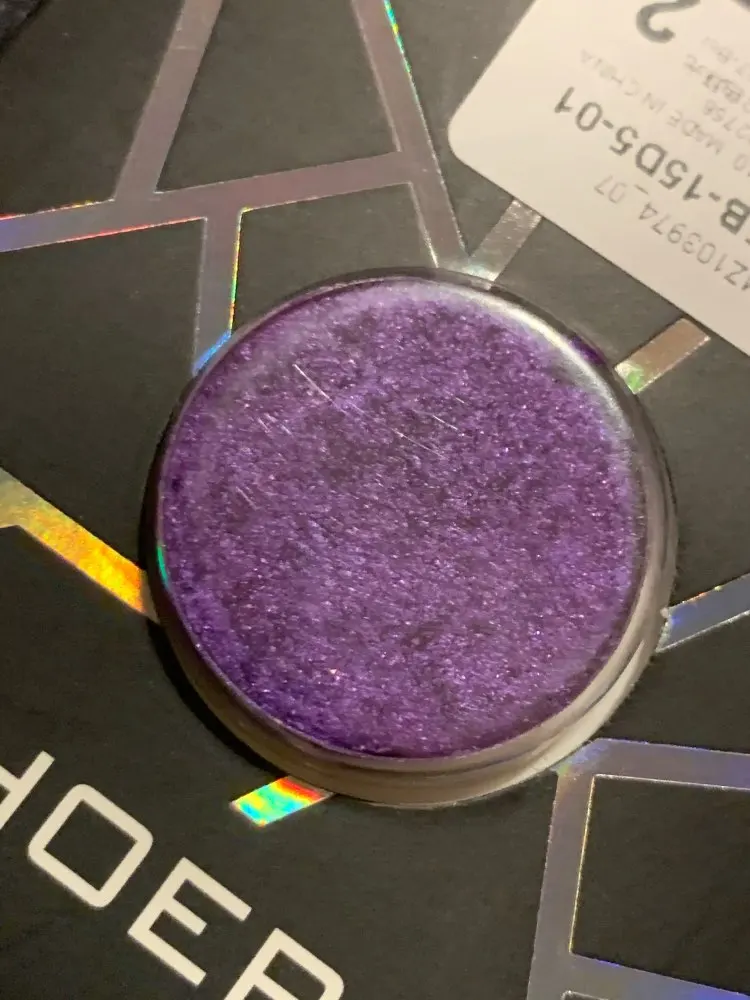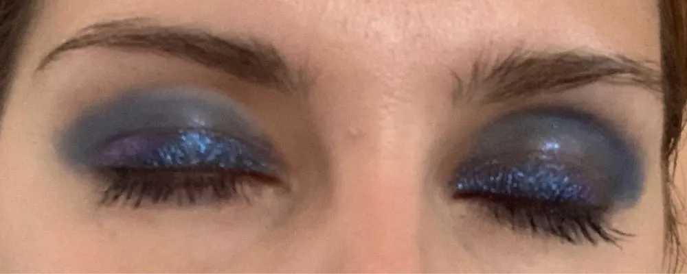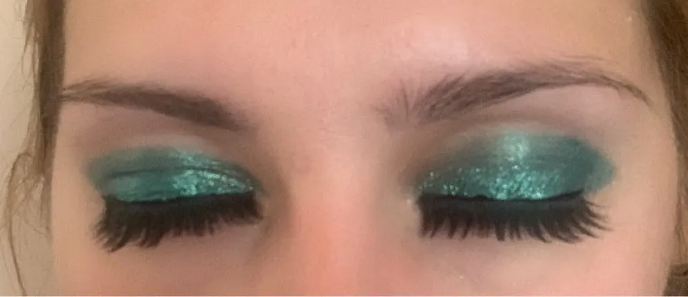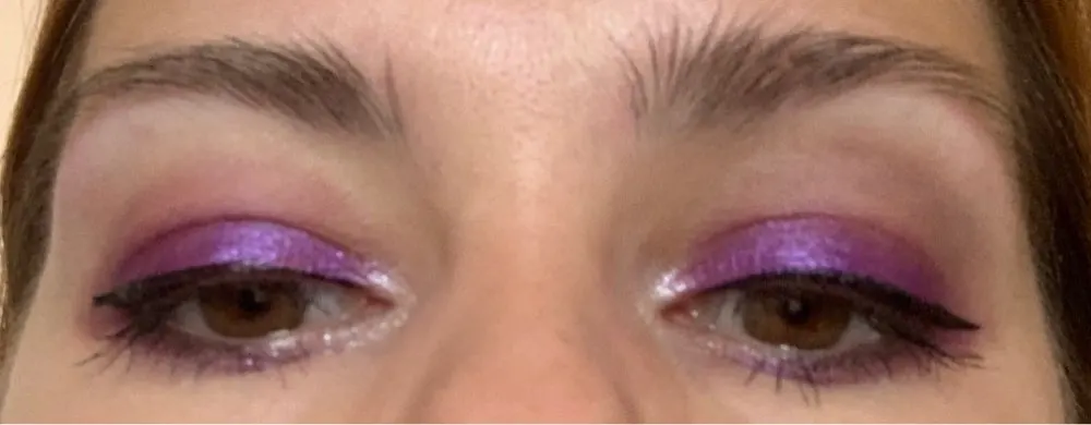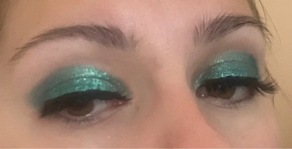 Очень насыщенный цвет с блесткой мелкой, не осыпаются, красилась, мне очень нравится