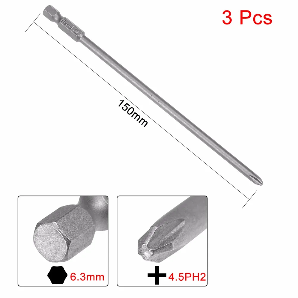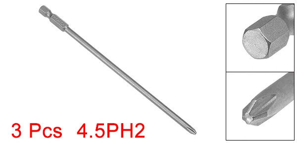 3 шт., 14 дюйма, шестигранный хвостовик 150 мм, Длина 4,5 мм, Phillips PH2, магнитные насадки для отверток S2