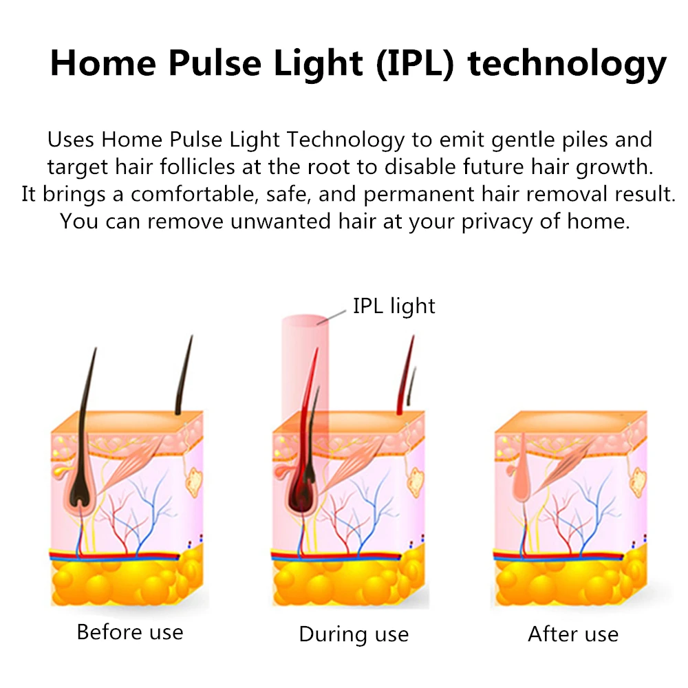2.Постоянный:IPL работает внутри пор, разрушает волосы papilla, таким образом, обеспечивает постоянное удаление волос 3.Длительный срок службы: КварцЛампа для удаления волос с длительным сроком службы и прочным использованием 4.Нулевые расходные материалы, Без средних, без расходных материалов 5.Безболезненный:Пять регулируемых оптимальных уровней энергии в зависимости от толерантности кожи. Обеспечивает нежное лечение безболезненно и легко, не повреждая кожу. 6.Быстрая и Большая область обработки: 3,8/4,0 квадратный см размер места не слишком большой или не слишком маленький для любой кривой тела, высокая эффективность и быстрая скорость, которая занимает всего несколько минут, чтобы удалить перекрещивающиеся волосы, которые трудно для традиционного метода удаления волос 7.Безопасно:Не влияет на нормальное выделение пота и кожного сала 8.Удобно:Портативный dsign и легко взять