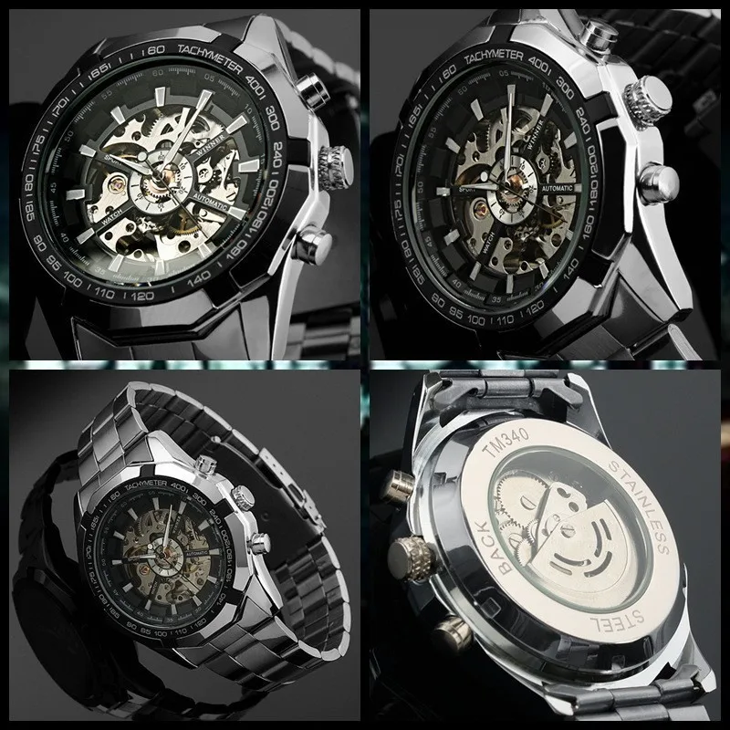 Forsining Марка серебряные и золотые Роскошные Нержавеющаясталь Водонепроницаемый мужские Часы с костями прозрачный механические часы мужские наручные часы