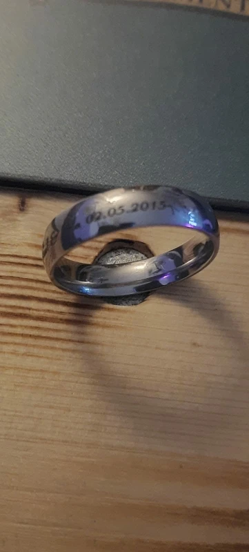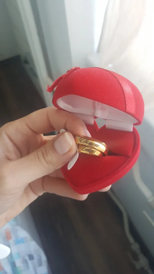 Дякую, обручки супер. Продавець зробив напис точно так, як я просила. Вже кілька разів мила посуд із обручкою на пальці - поки вода не впливає на стан металу і напис. Дуже задоволена покупкою)