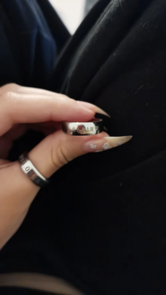 кольцо пришло чуть велико, чем я заказывал, но в целом неплохо качество хорошее, ещё один минус – гравировка другого цвета (я брал чёрный, пришел – серебряный).