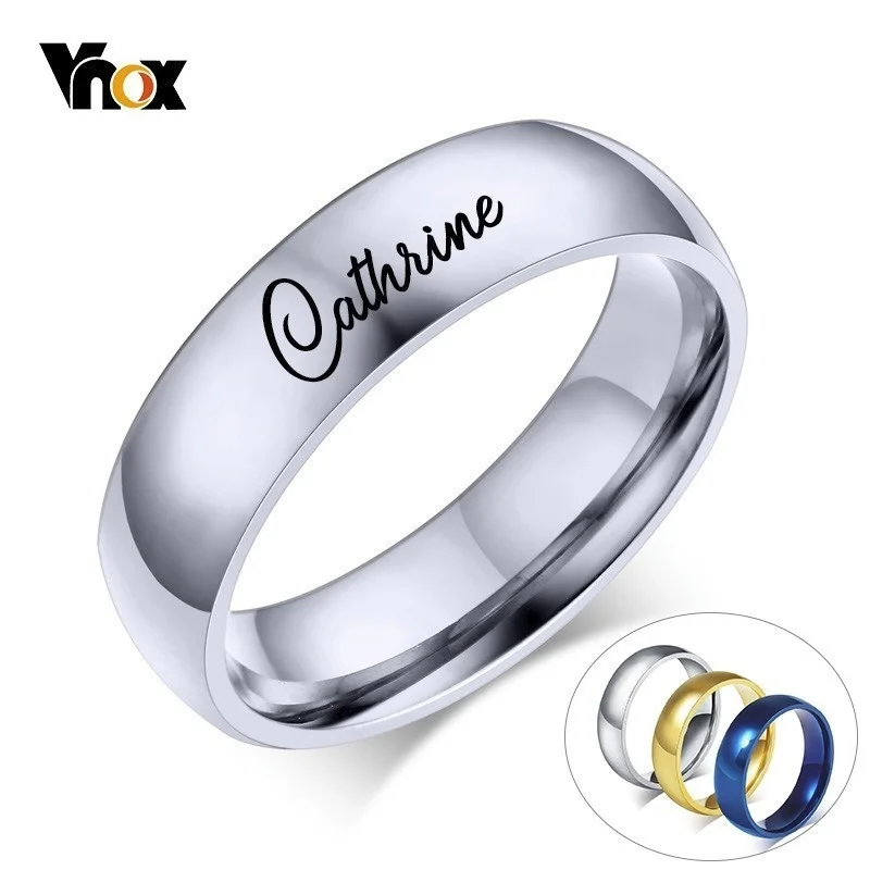 Обручальное кольцо Vnox из нержавеющей стали для мужчин и женщин, обручальное кольцо с именем и бесплатной гравировкой, 6 мм