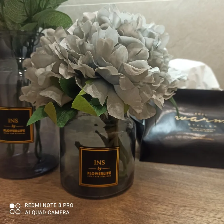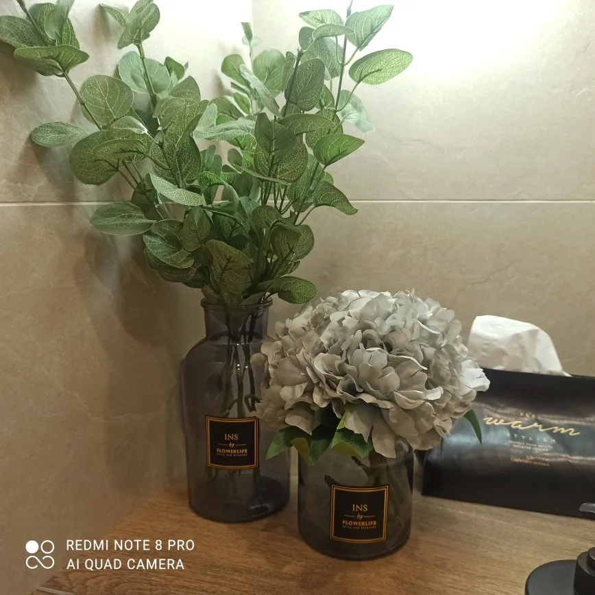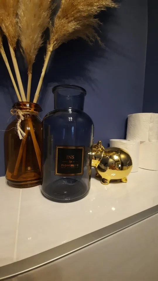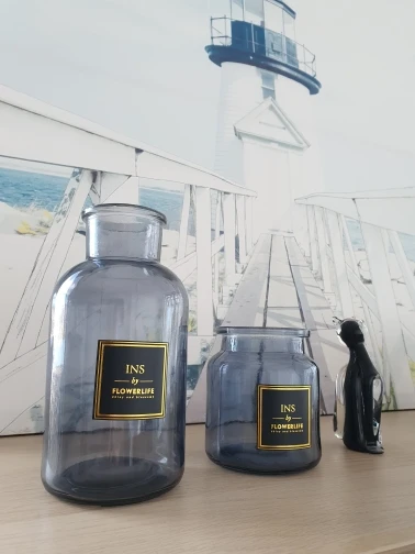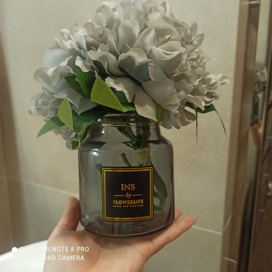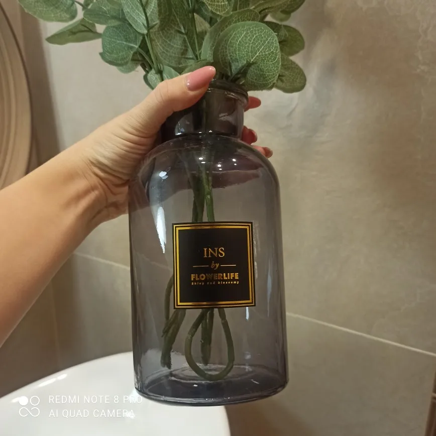 Ваза из серого стекла для спальни, прозрачная стеклянная ваза, настольные Предметы интерьера, миниатюрная Золотая наклейка