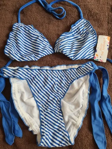 Привлекательный купальник-бикини, женский купальник, полосатый купальный костюм с боковой завязкой, летняя пляжная одежда, сексуальное бикини пуш-ап
