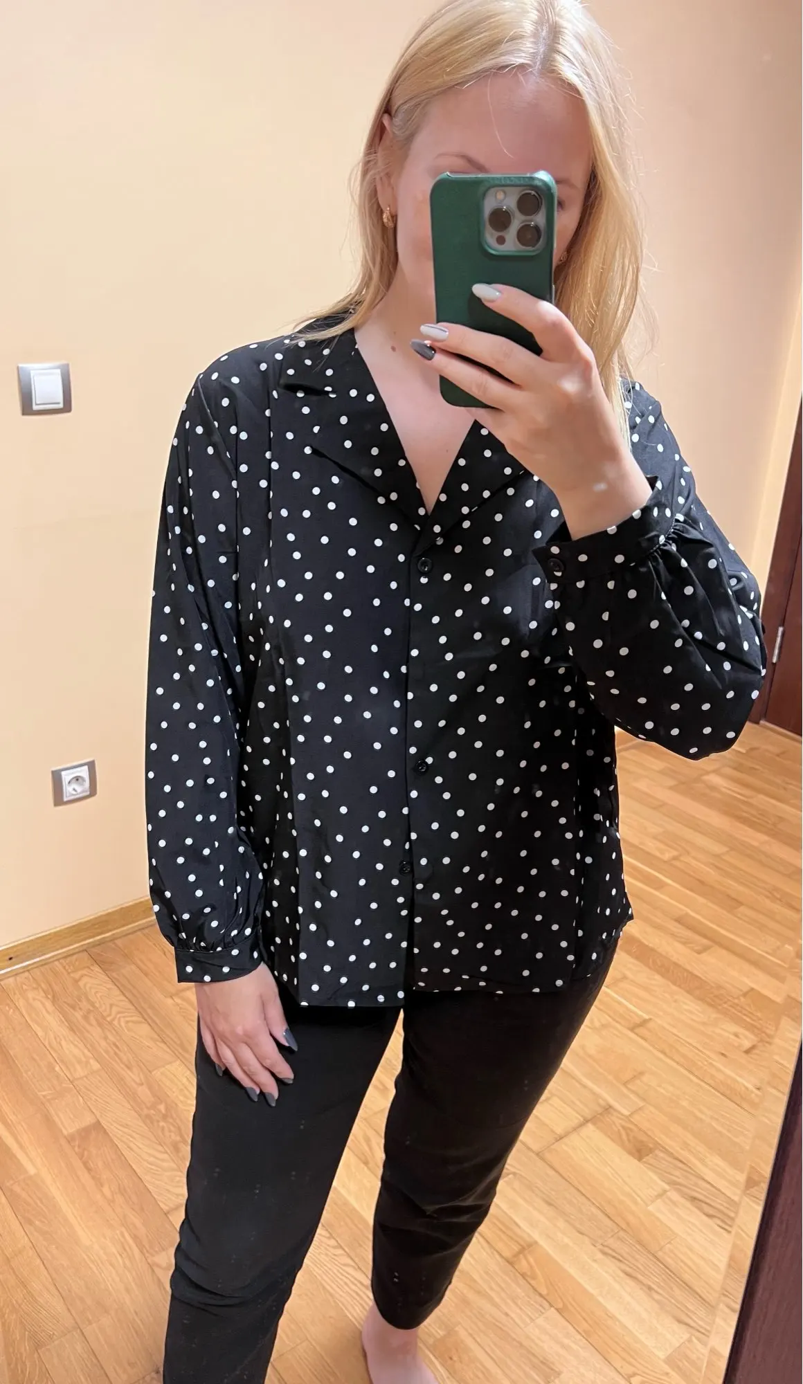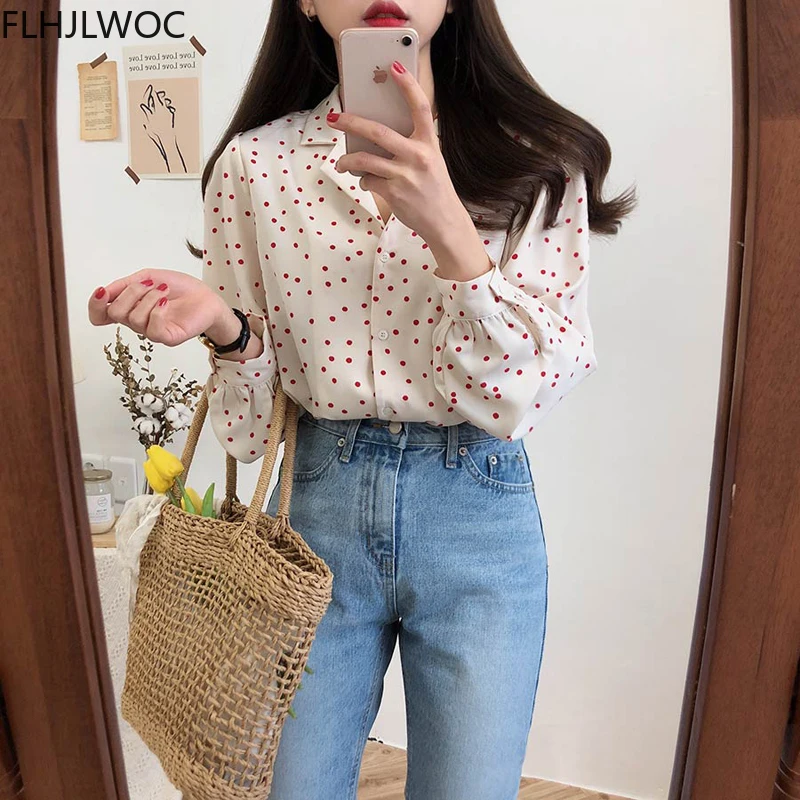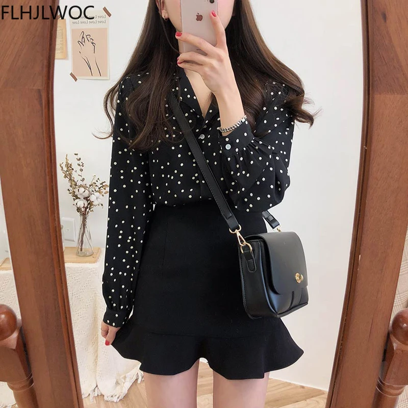 2022 свободные рубашки в стиле преппи, женская блузка, женская блузка в горошек в корейском и японском стиле, черная рубашка на пуговицах, 315