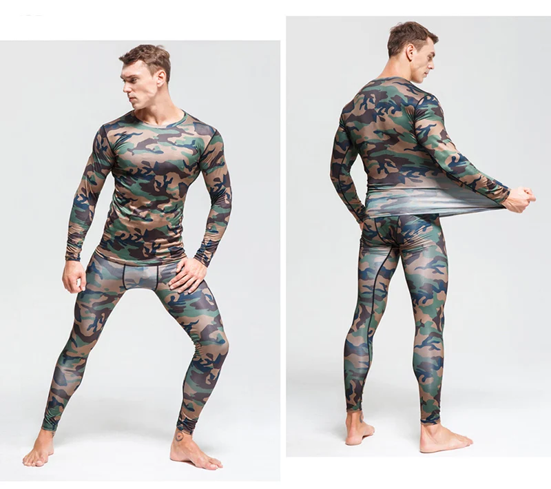 Мужское термобелье, терморубашка, Мужская быстросохнущая Спортивная одежда для мужчин, камуфляжная Пижама, термобелье, верхняя рубашка