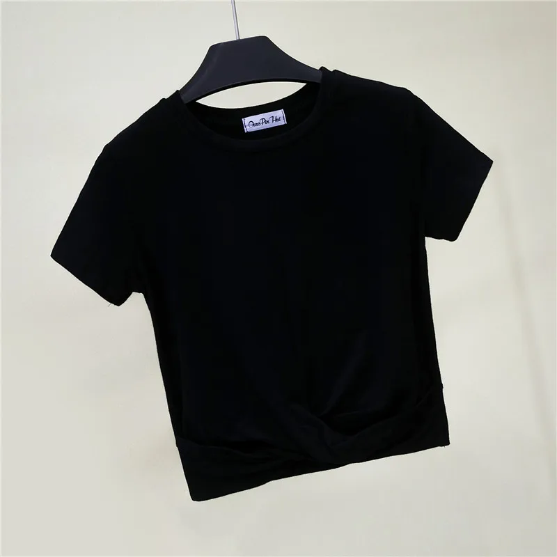 Женская футболка, укороченный топ, летняя рубашка, женский укороченный топ с круглым вырезом, повседневная Однотонная футболка, хлопковая Camiseta Mujer