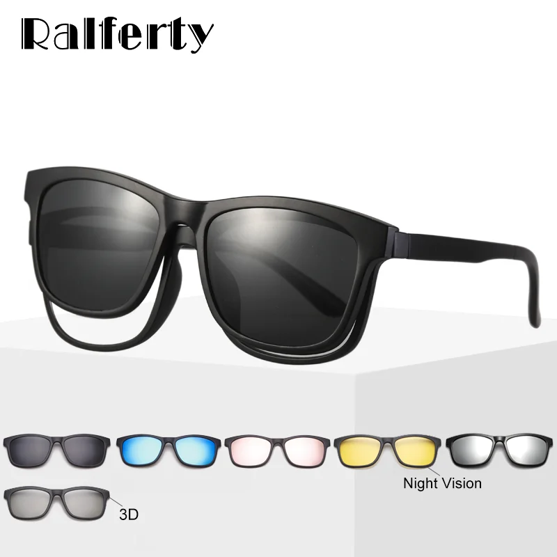 Ralferty, магнитные солнцезащитные очки для мужчин, оправа для очков с зажимом, солнцезащитные очки для женщин, поляризационные, UV400 TR90, 3D очки ночного видения A2201