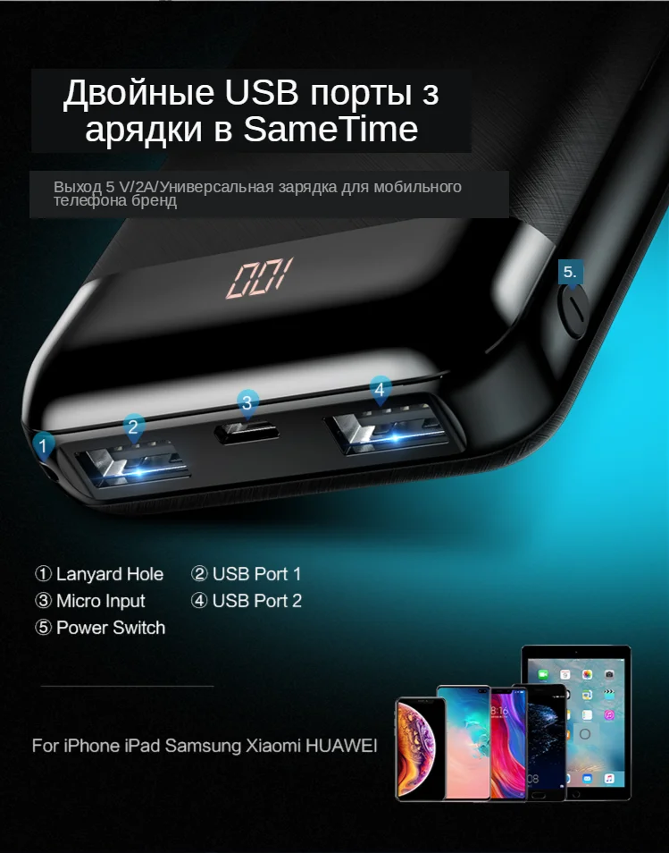 Feature llPower Bank For iPhone Samsung Xiaomi Huawei Poverbank