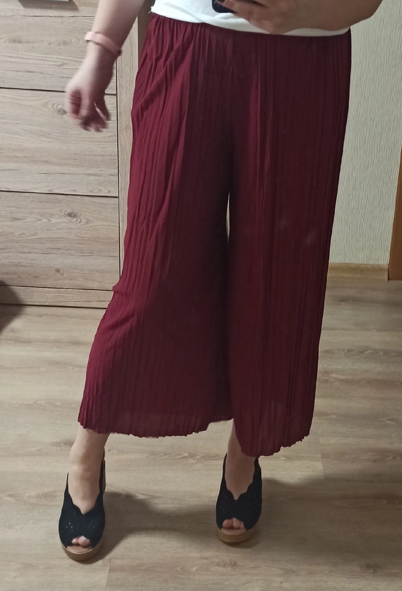 Женские шифоновые брюки с завышенной талией, плиссированные штаны с высокой талией, тонкие брюки с широкими штанинами, повседневные юбки с эластичным поясом