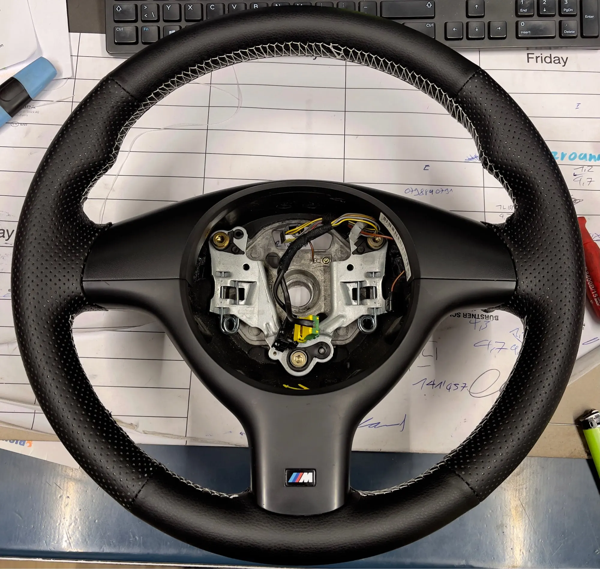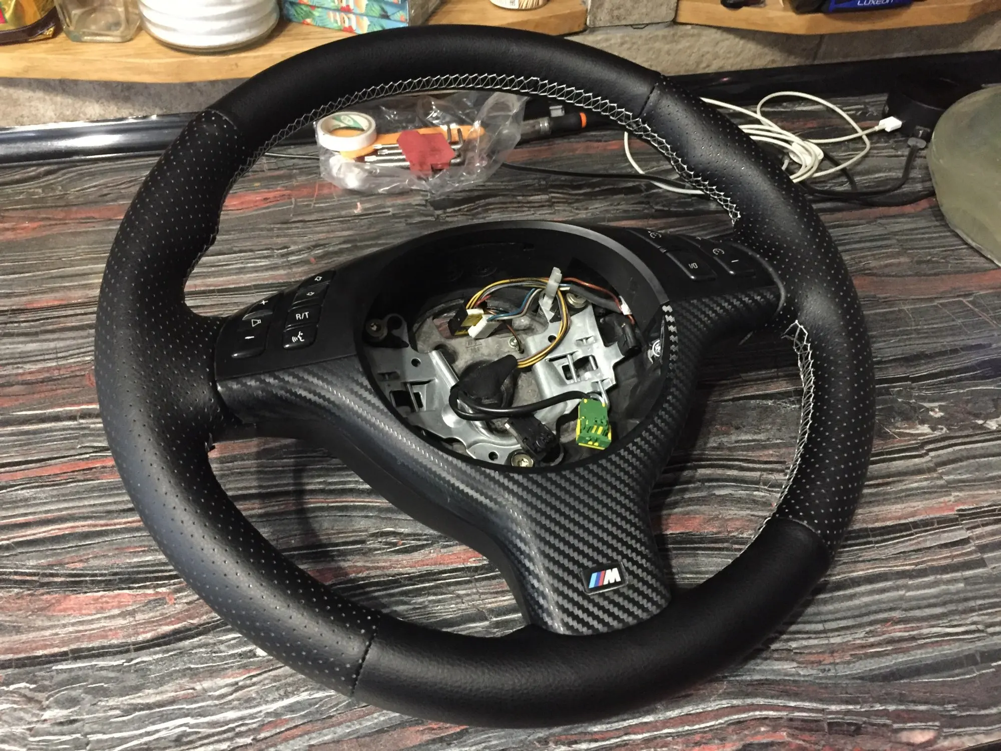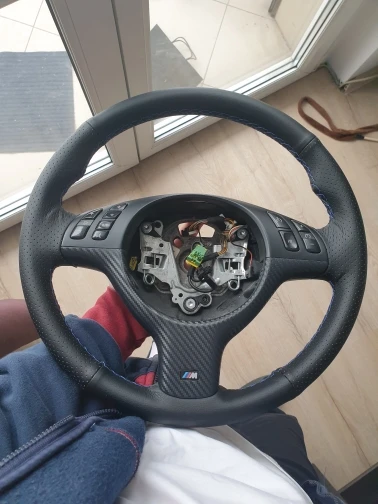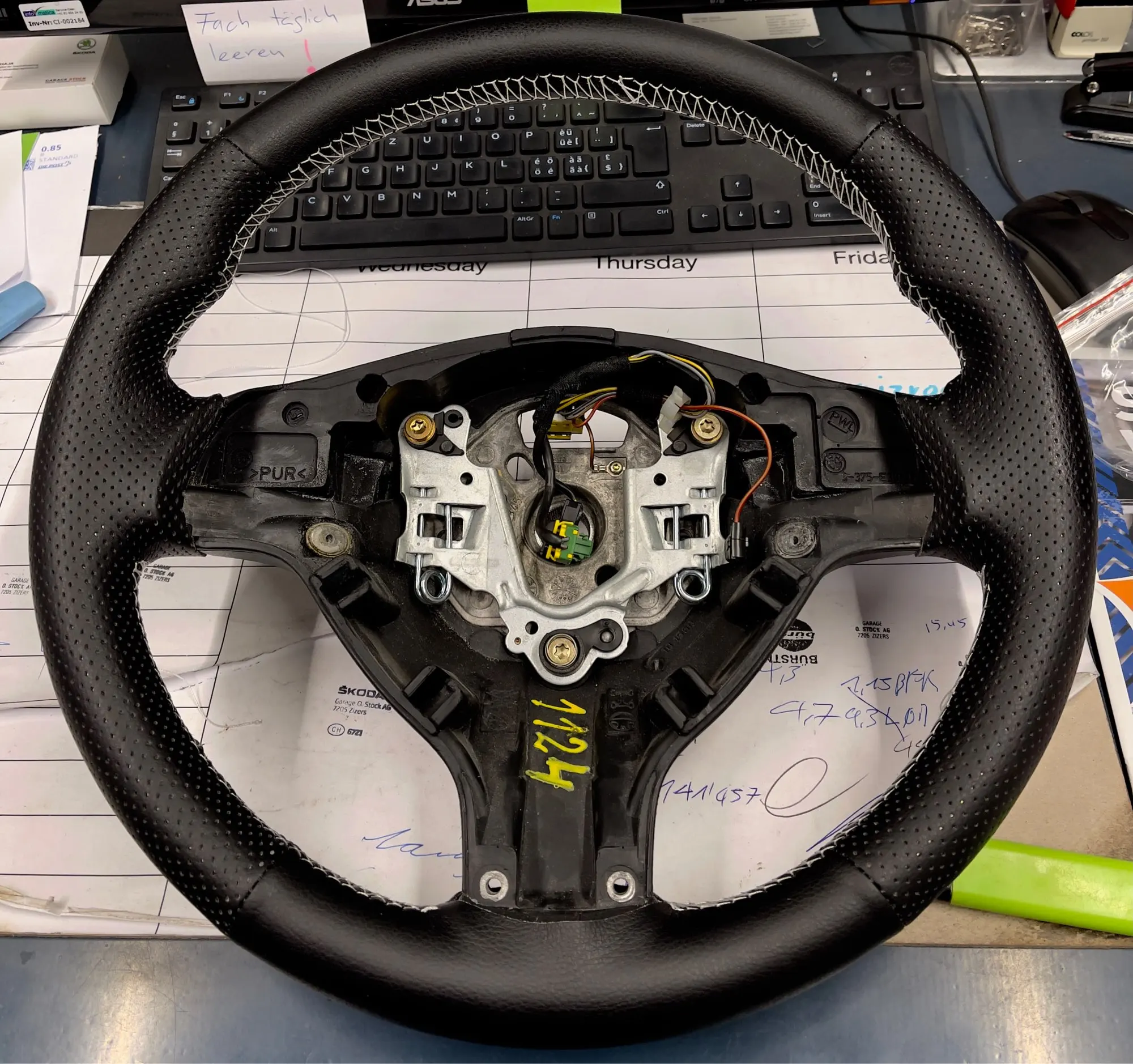 Искусственная кожа слишком мала для спортивного руля m, если только вы не удалите поврежденную старую кожу с колеса, это может подойти.