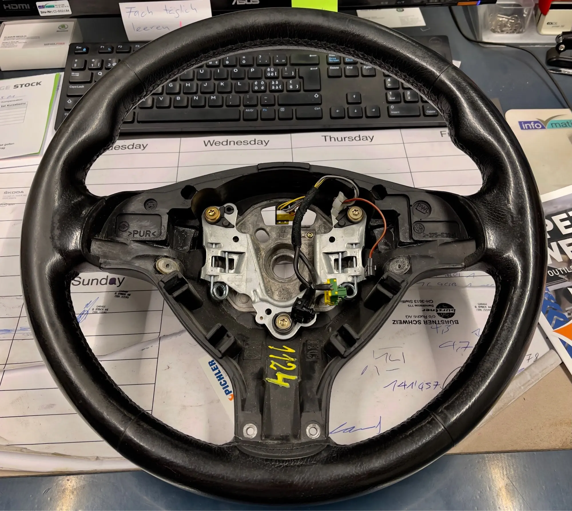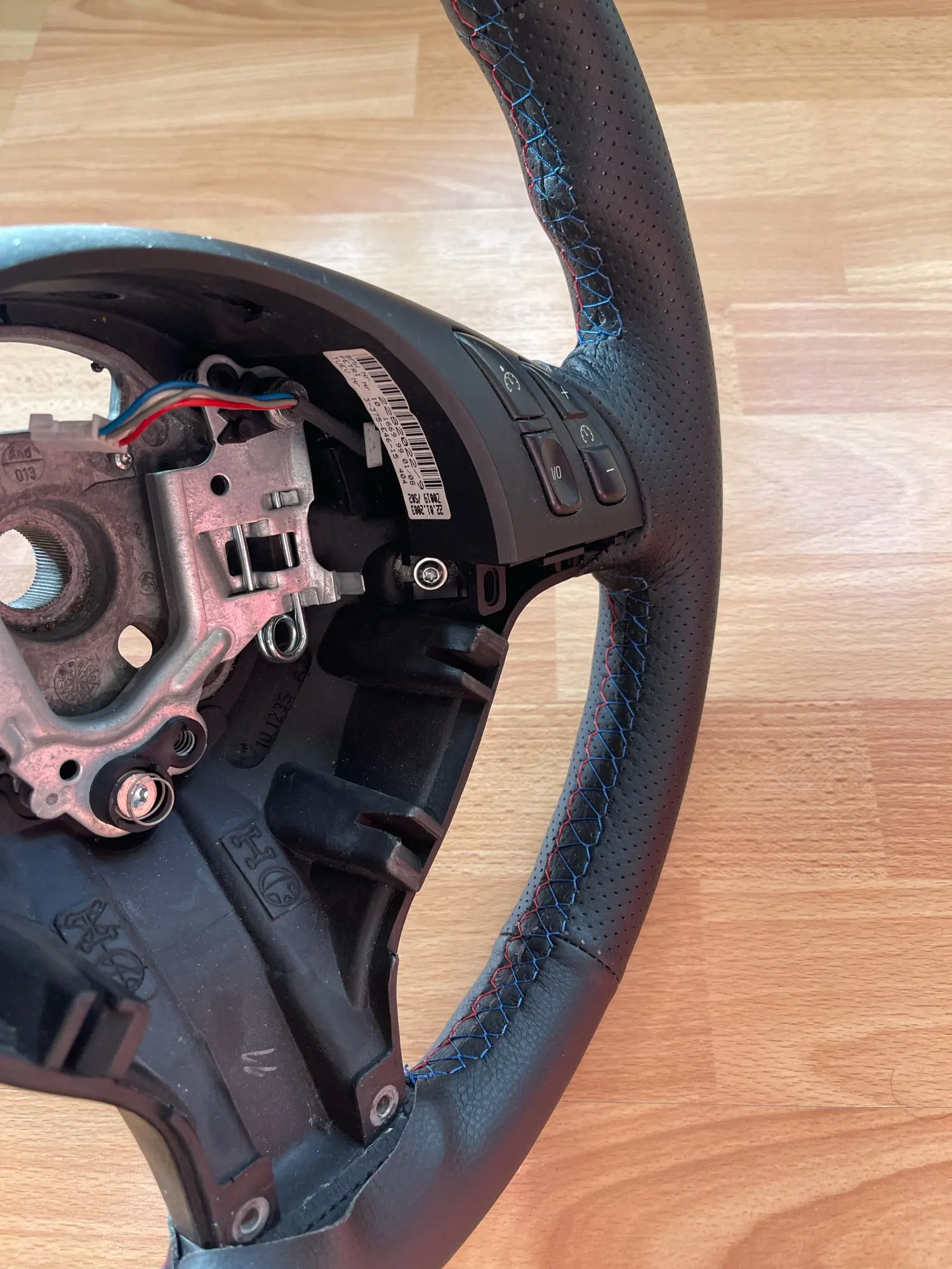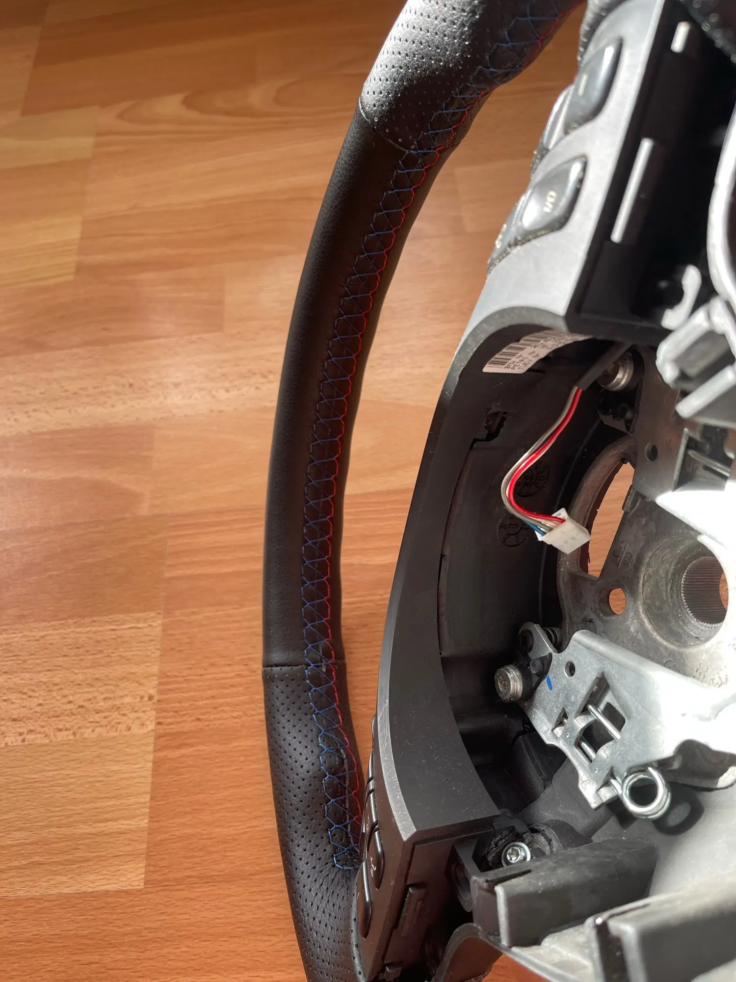 Искусственная кожа слишком мала для спортивного руля m, если только вы не удалите поврежденную старую кожу с колеса, это может подойти.