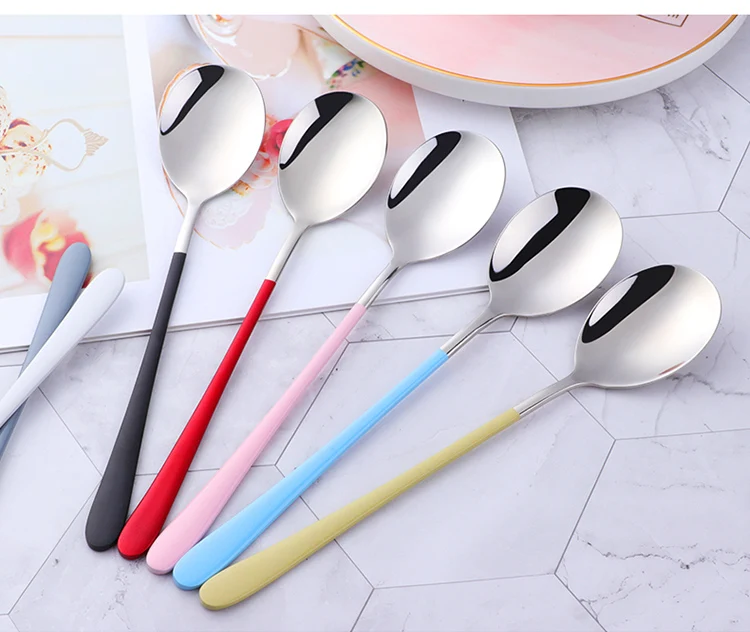 Bisda цветная длинная ручка Золотая нержавеющая сталь для ложек посудомоечная машина безопасная для чая, кофе, мороженого, десертный суповой кухонной посуды
