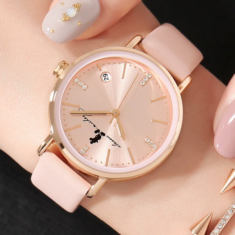 Женские часы с календарем Disney, модные, инкрустированные бриллиантами, блестящие, 298