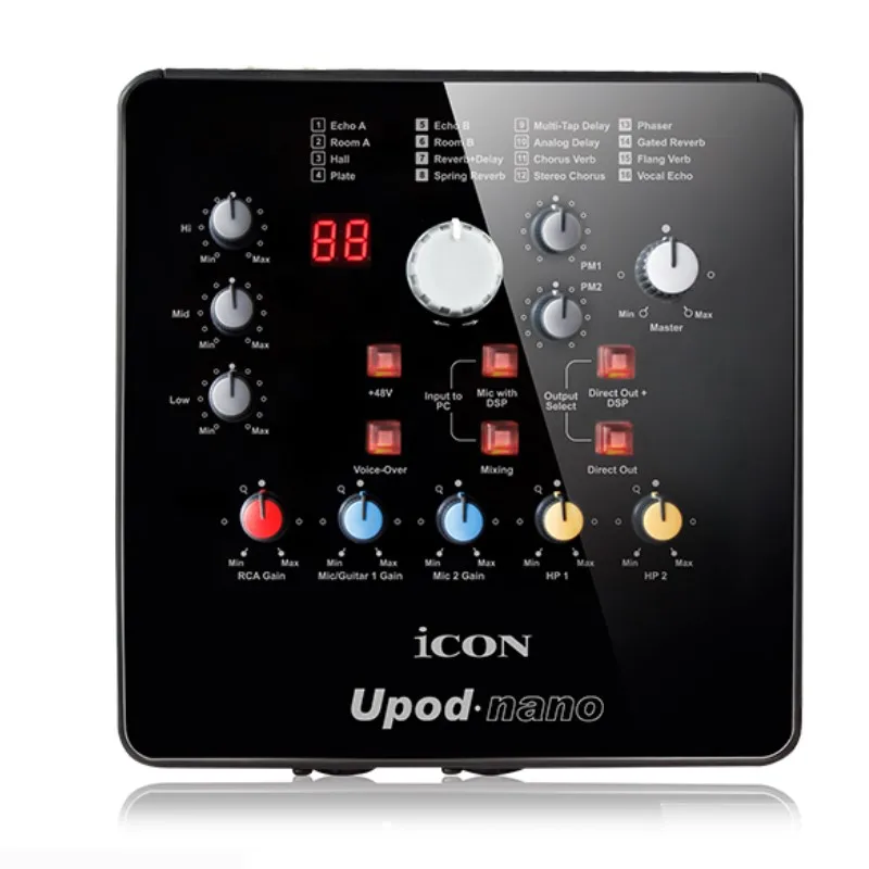 Звуковая карта ICON upod nano USB, plug play, 2 входавхода для гитары с микрофоном, 2 выхода, интерфейс USB для записи, фантомное питание 48 В для микрофона