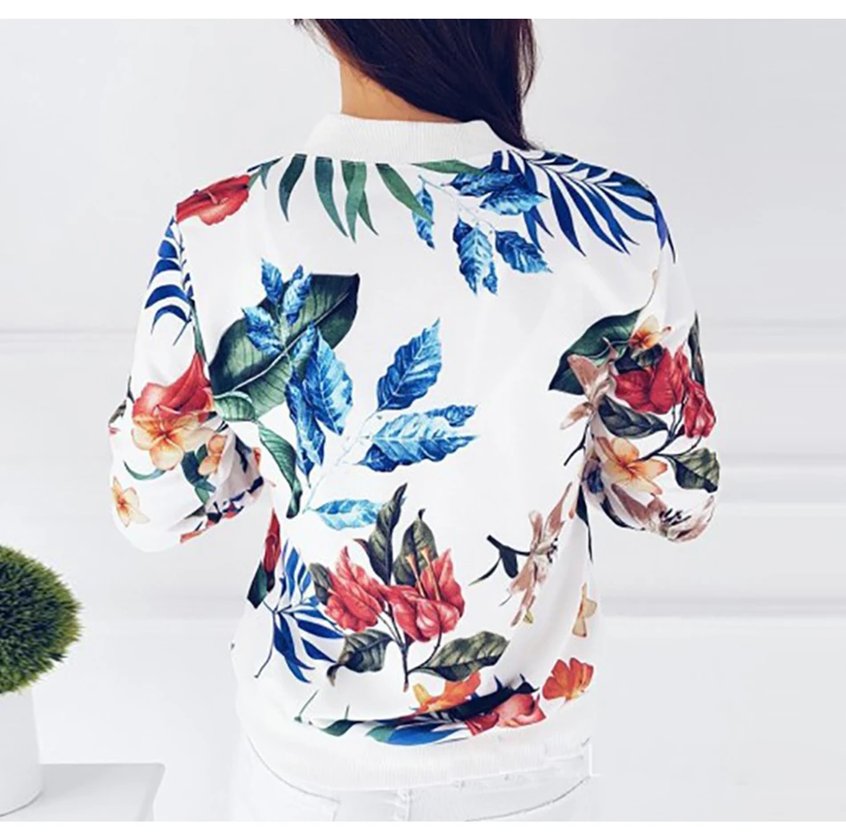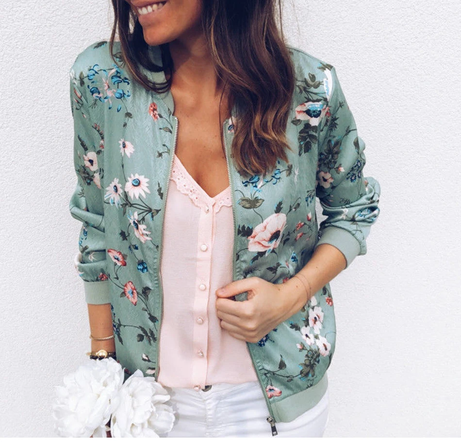 Женская куртка-бомбер размера плюс, с цветочным принтом и длинным рукавом