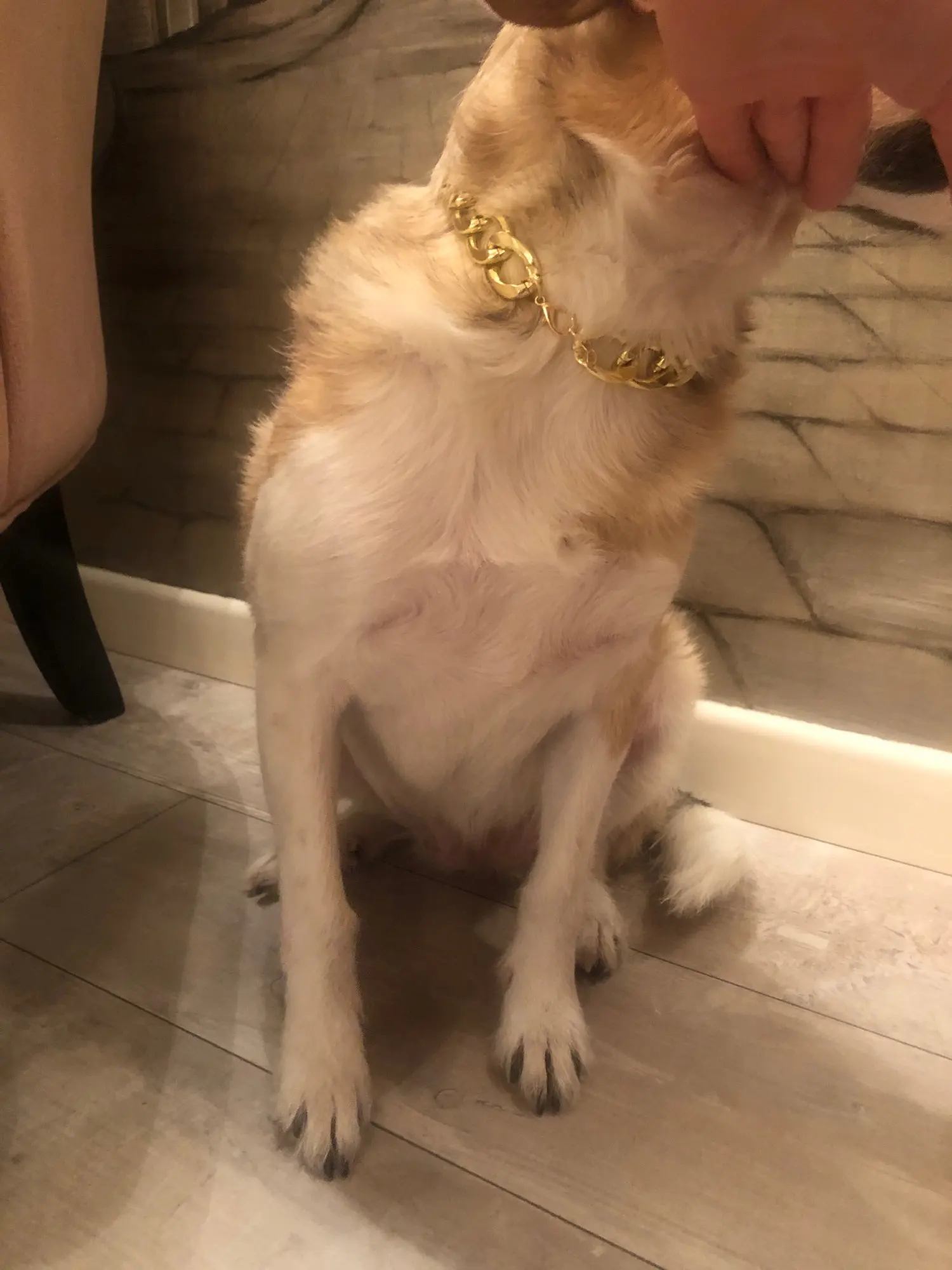 Заказал цепочку, но она еле застегнулась на шее собаки. Сделал ещё один заказ и удлинил.