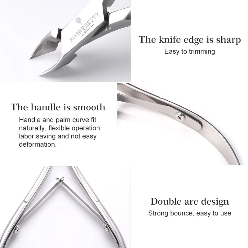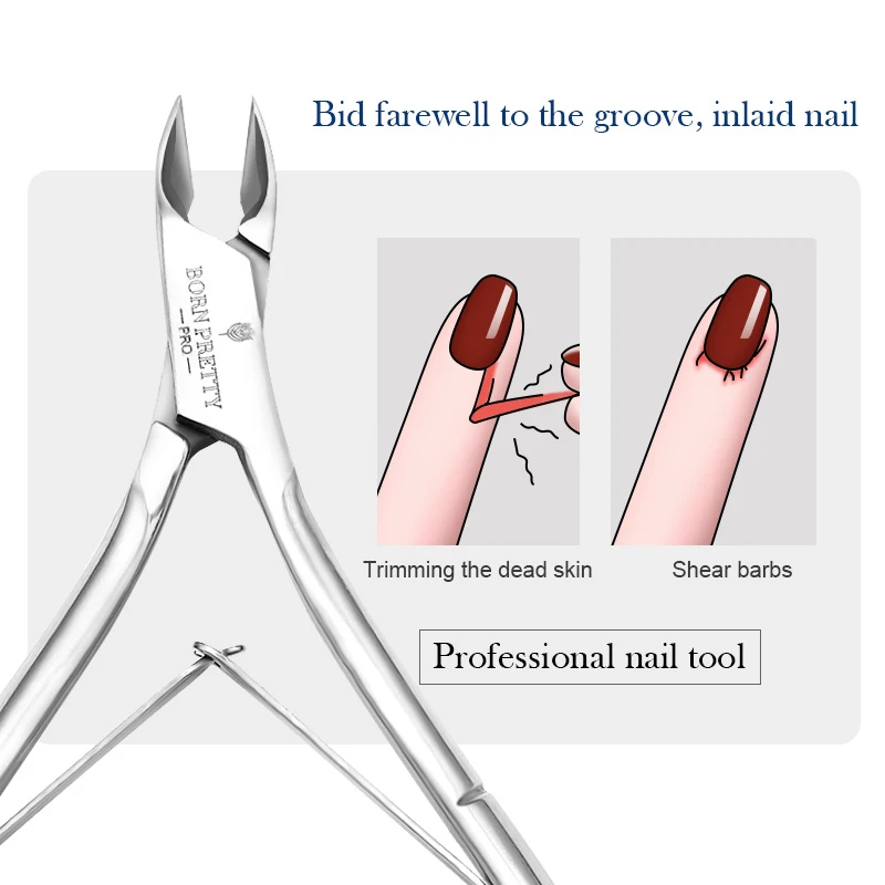 Кусачки BORN PRETTY для маникюра, кусачки для кутикулы, резак для краев, Серебряный Пинцет из нержавеющей стали, кусачки плоскогубцы-ножницы, инструмент, пушер для ногтей