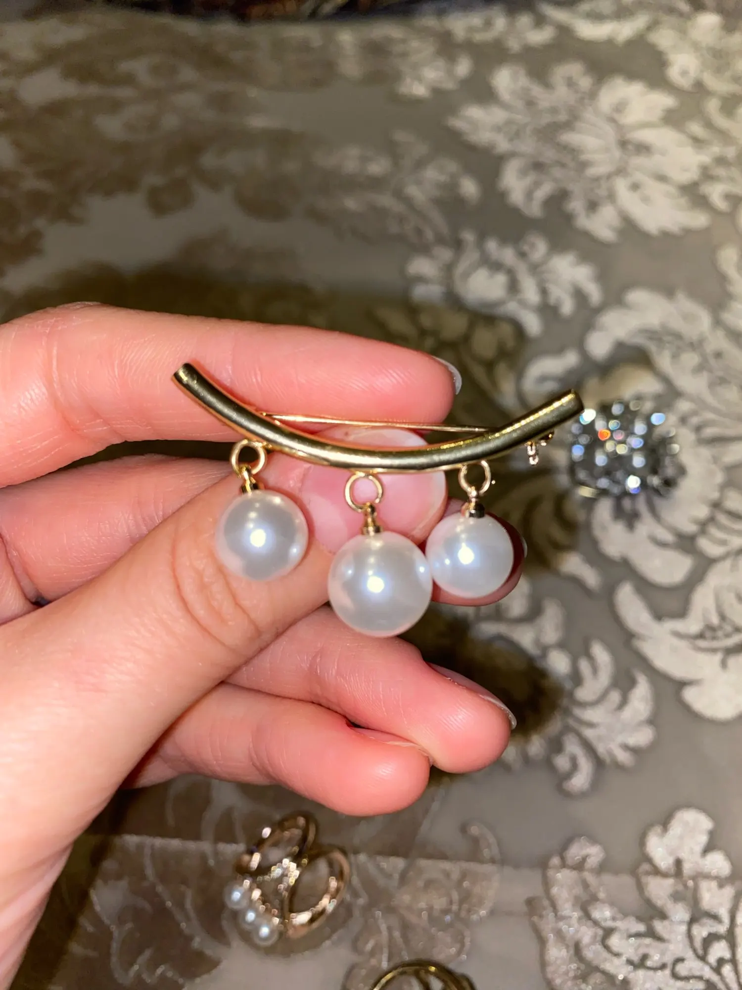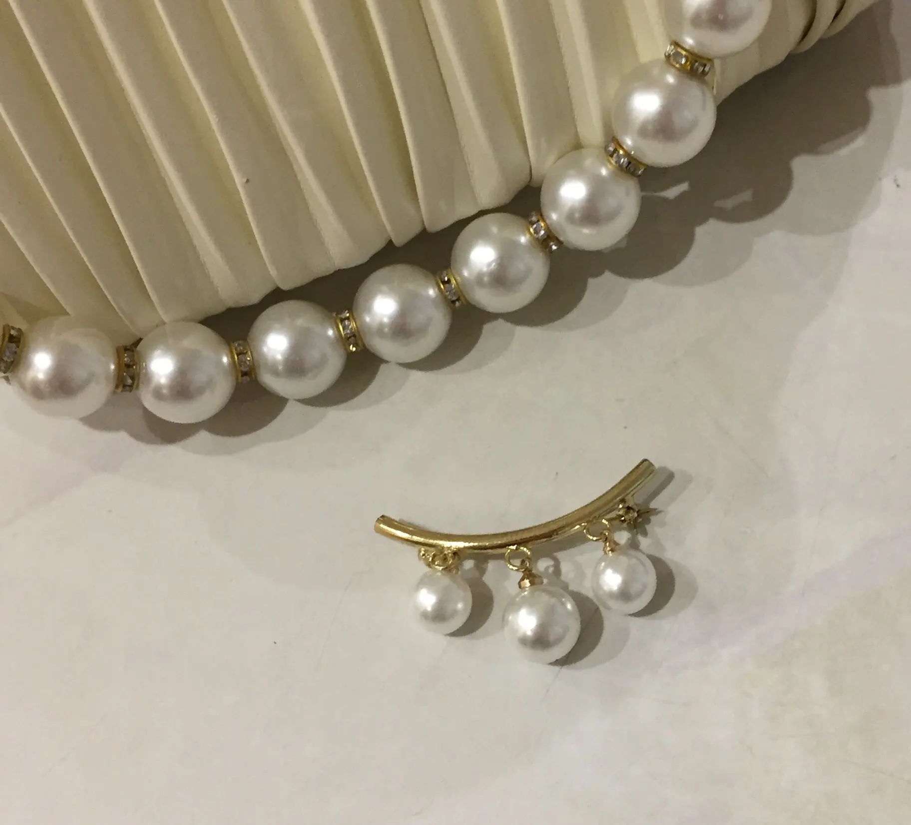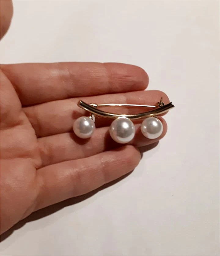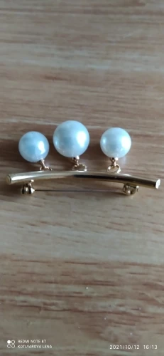 Брошь на булавке, с жемчугом и фиксированным ремешком