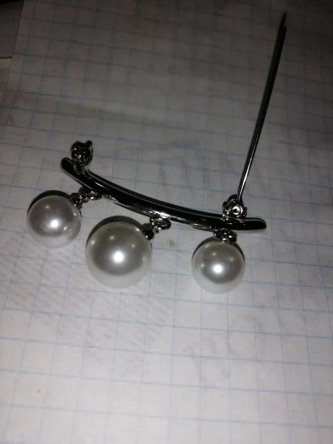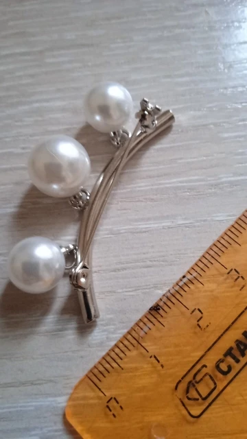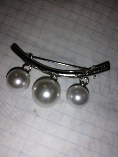 Продавец положил вместо одной булавки целых 2 штуки за что ему огромное спасибо! Сама булавка симпатичная, бусины на колечках и поэтому качаются создавая эффект движения.