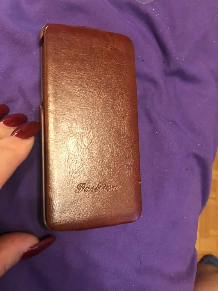 Чехол - заглядение!!! Качественно сделано, лазерная гравировка и это из КОЖИ, из натуральной кожи. Запах дорогой кожи опьяняет. Так подходит к моим перчаткам и сапожкам! Айфон сел в него, как родной: нигде не хлюпает, не люфтит. Для зарядки от провода нужно открыть чехол, но восьмерку можно и от беспроводной зарядки зарядить. Я в восторге!!!