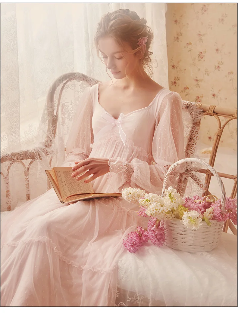 Ночная рубашка Женская весенне-летняя длинная кружевная женская пижама с длинным рукавом пикантные ночные рубашки элегантные женские
