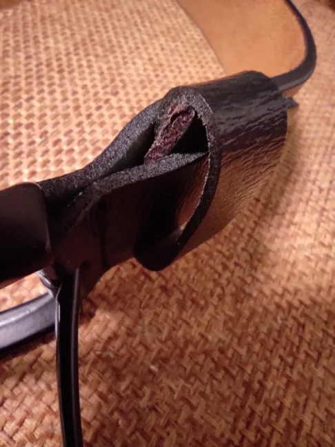 Ремень отличный, нат. кожа, запаха нет, муж носит три недели и ничего не пошоркалось, не облупилось, очень доволен)