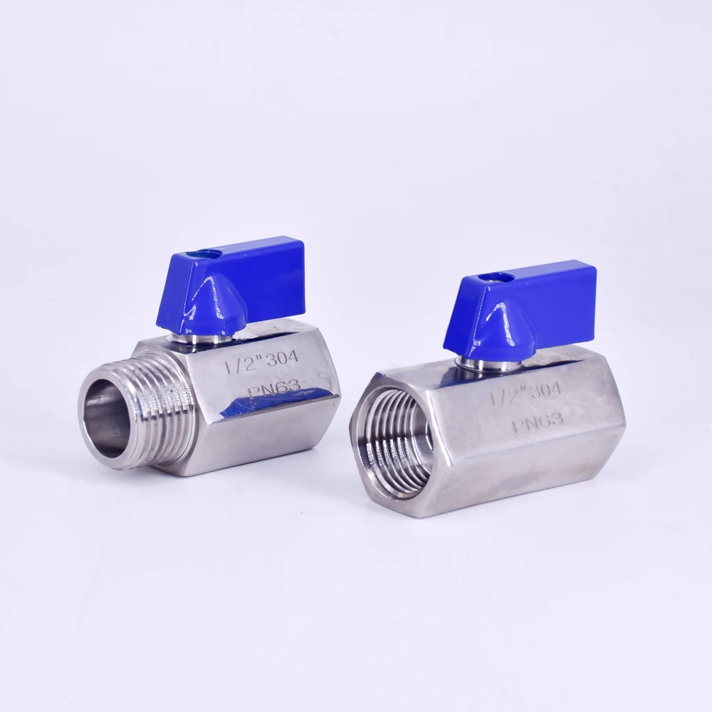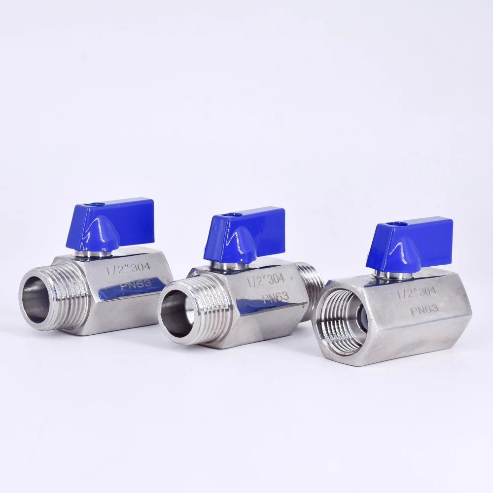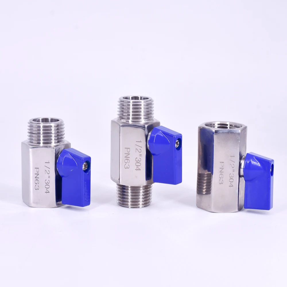 Мини санитарный шаровой кран из нержавеющей стали, 18 дюйма, 14 дюйма, 38 дюйма, 12 дюйма, 34 дюйма, 1 дюйм, BSP NPT, женский и мужской, с синей ручкой, для домашнего пивоварения SUS 304 316L